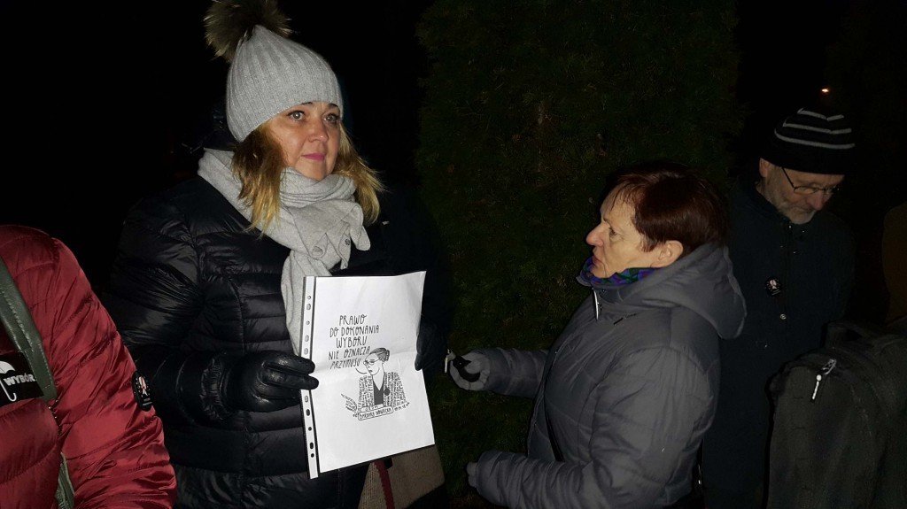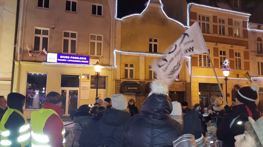 Po krótkich przemówieniach wszystkie zebrane osoby przeszły spod sądu na plac Wejhera, skandowano m.in. hasła "Nie umiecie w głosowania, mandaty do oddania" i "Demokracja". Tam pod biurem poselskim PiS odczytana została tzw. lista hańby (posłów i posłanek, którzy zagłosowali przeciwko projektowi lub wyjęli karty do głosowania – red.).