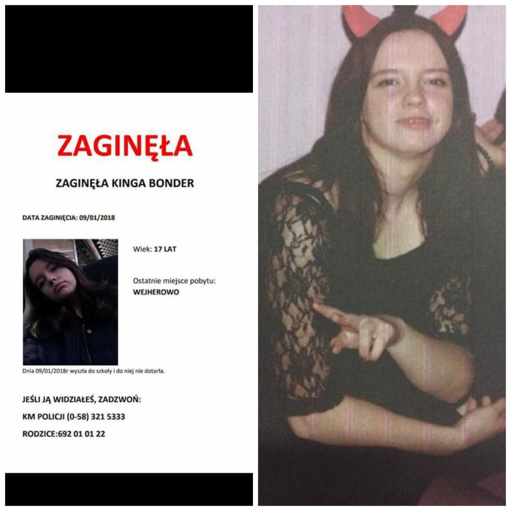 W Wejherowie zaginęła 17-letnia Kinga Bonder, która 9 stycznia 2018 roku wyszła do szkoły i do niej nie dotarła.