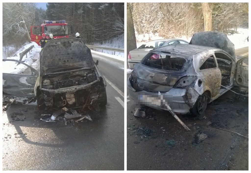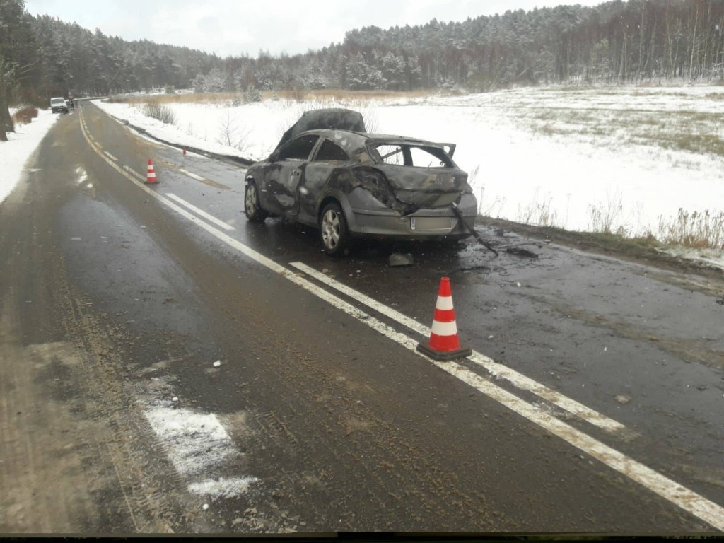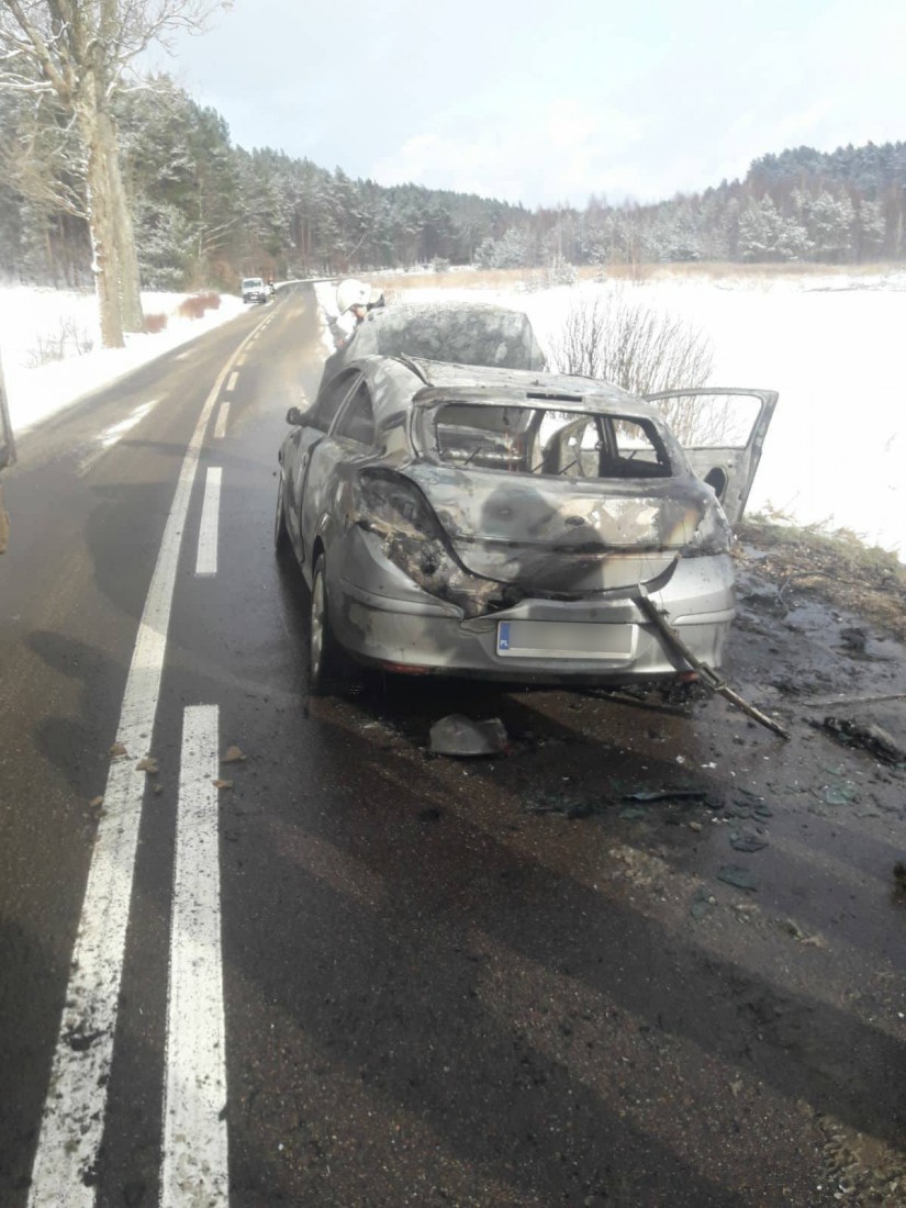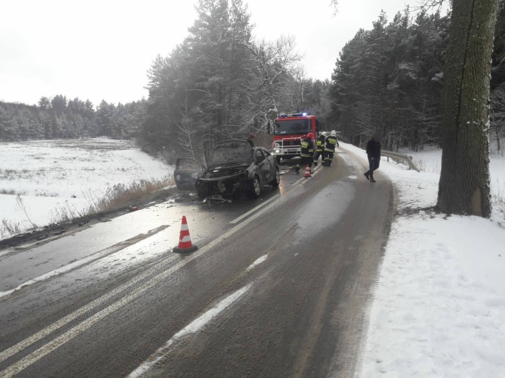 W poniedziałek (5 lutego) na drodze między miejscowościami Smażyno i Pobłocie zapalił się samochód osobowy. Na miejsce wezwano trzy jednostki straży pożarnej. Auto doszczętnie spłonęło.