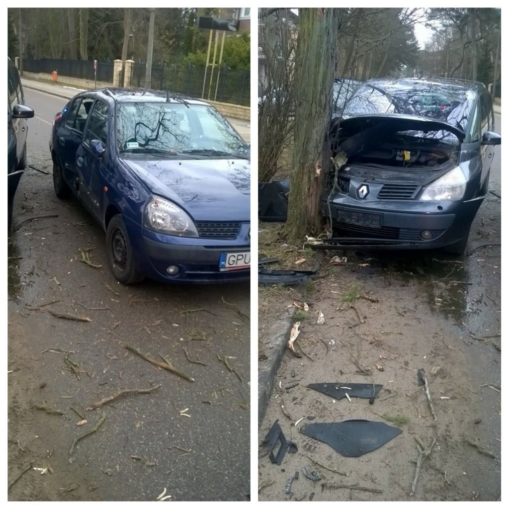 – Kierujący autem renault escape najprawdopodobniej nie zauważył skręcającego renault talia, próbował je ominąć, nie zdążył jednak wyhamować, uderzył w drzwi poprzedzającego samochodu i w ostateczności zderzył się z drzewem – potwierdza mł. asp. Krzysztof Minga, rzecznik prasowy Komendy Powiatowej Państwowej Straży Pożarnej w Pucku.