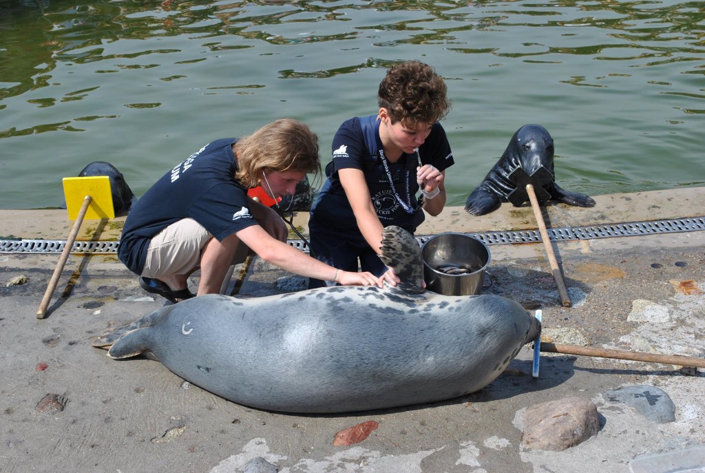 A na poważnie – wolontariusz w czasie pracy w Stacji Morskiej ma wiele obowiązków. To m.in. wspomaganie koordynacji ruchu turystycznego (co wymaga cierpliwości do ludzi), pomoc w utrzymaniu porządku i czystości na terenie Stacji Morskiej, przygotowywanie posiłków fokom, sprzątanie po nich, udział w treningu medycznym zwierząt oraz – w razie konieczności – interwencje w terenie przy martwych i żywych zwierzętach.