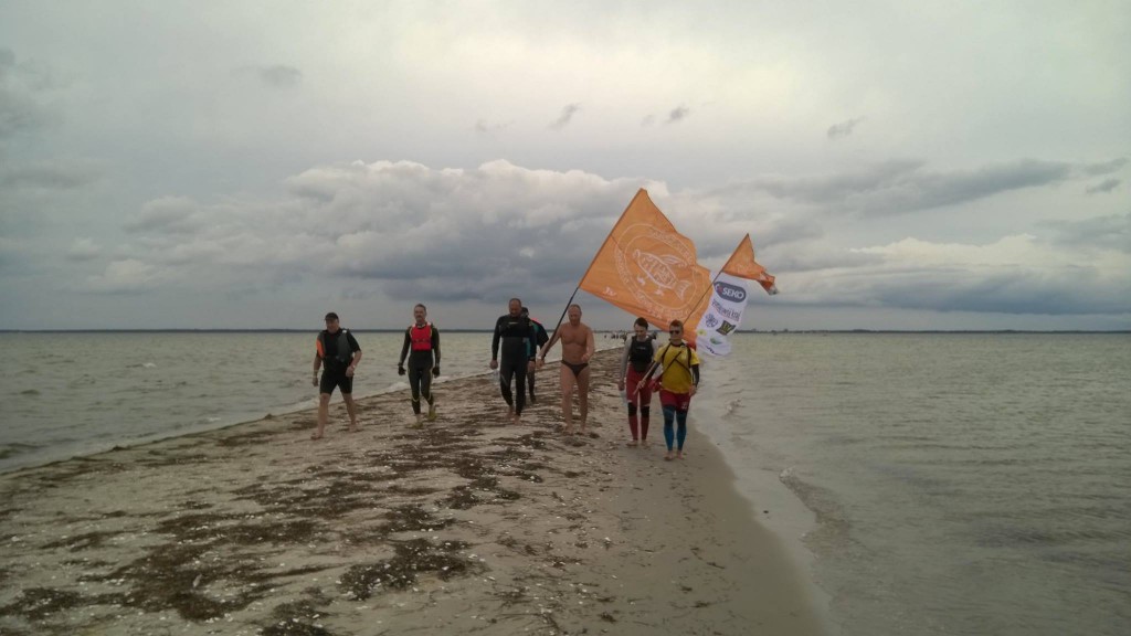– etap "wiary" – wejście do wody i stopniowe oddalanie się od brzegu Półwyspu Helskiego, po ok. 500 m uczestnicy zaczynają płynąć;