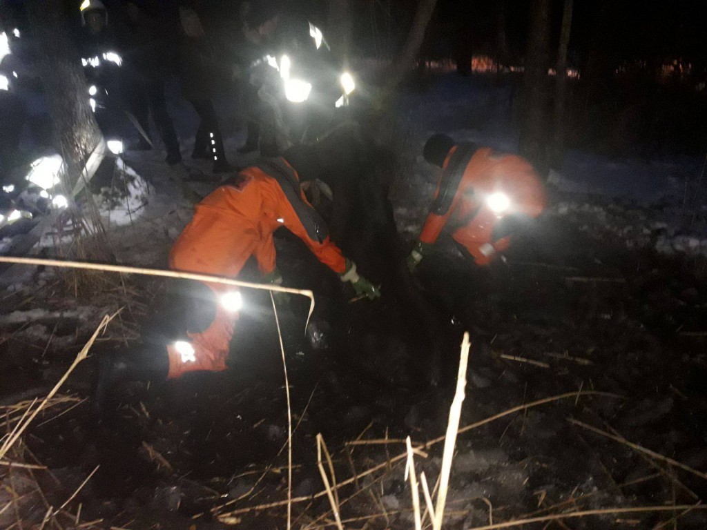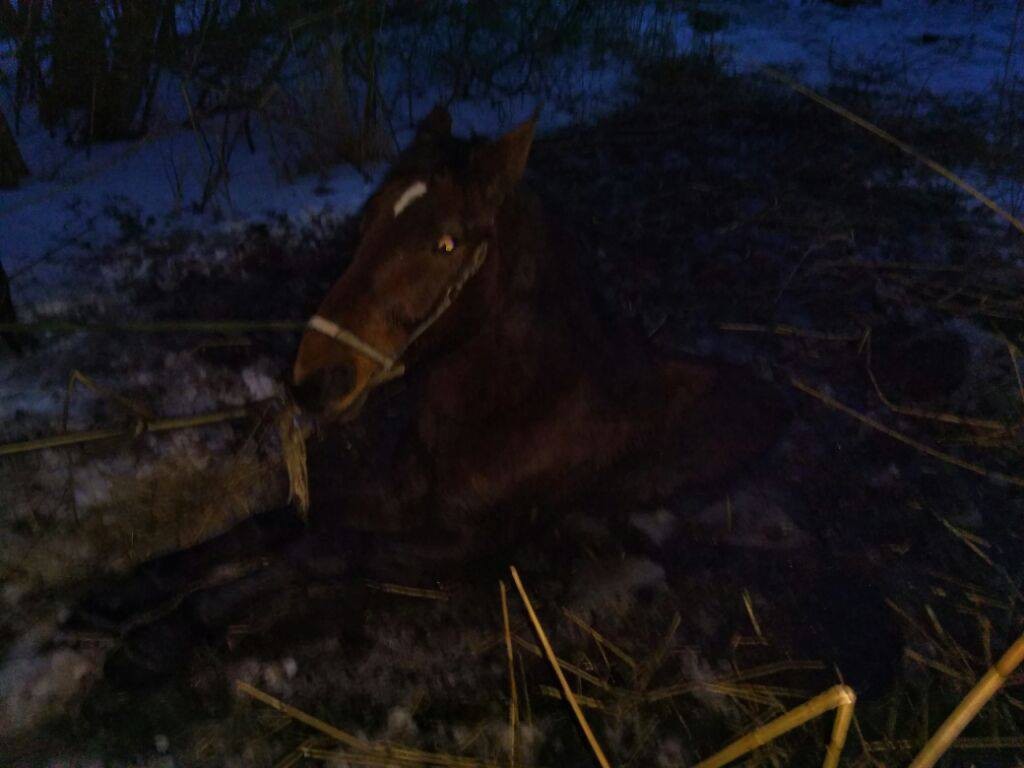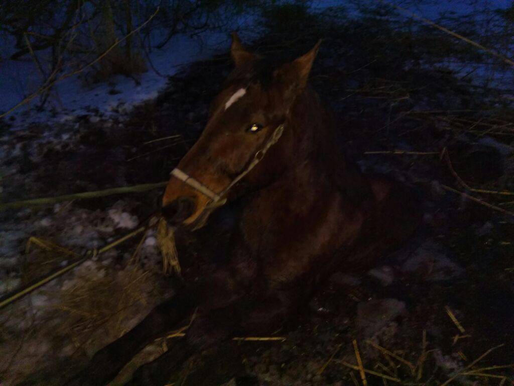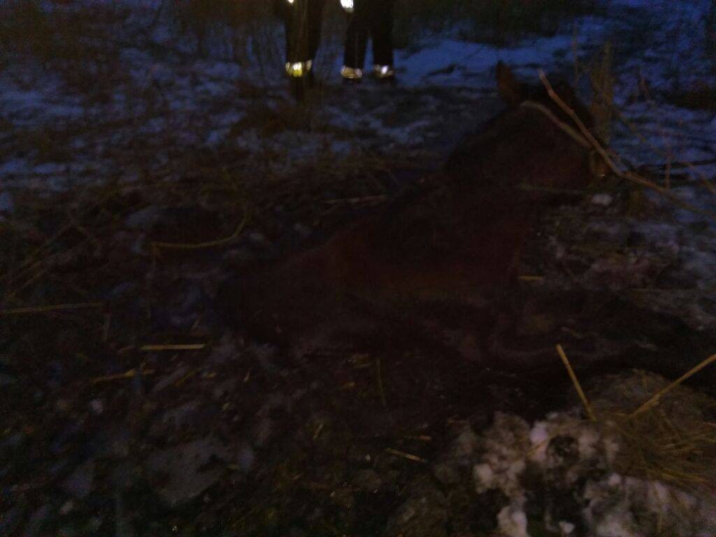 Pod koniem załamał się lód, zwierzę wylądowało w grząskim bagnie.