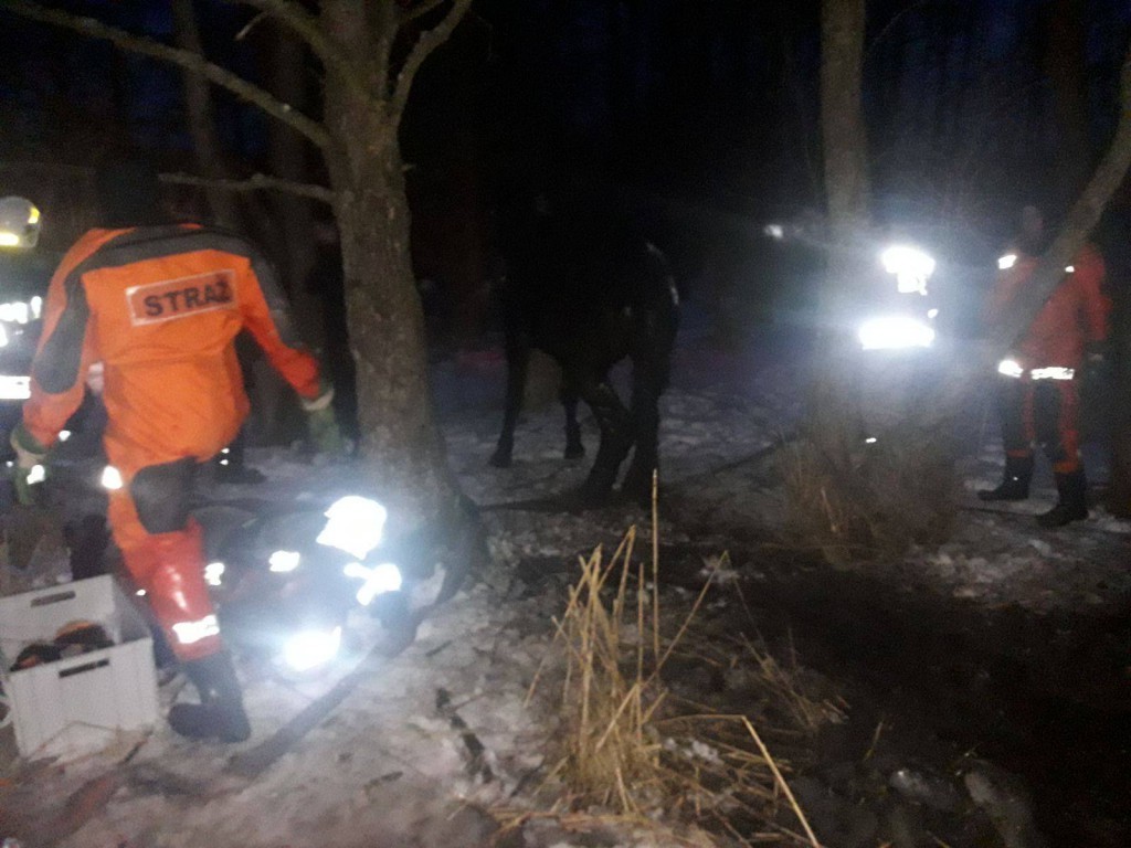 – Z bagna wystawały łeb i przednie nogi wałacha, a pozostała część tułowia zanurzona była w błocie wraz z rozbitą krą lodową. Zwierzę w wyniku wpadnięcia do bagna, próbowało się wydostać i opadło z sił. W miejscu zdarzenia byli właściciel wraz z obsługą stajni, którzy podjęli próbę wyciągnięcia konia z bagna. Próba zakończyła się niepowodzeniem – informują strażacy z OSP Choczewo.