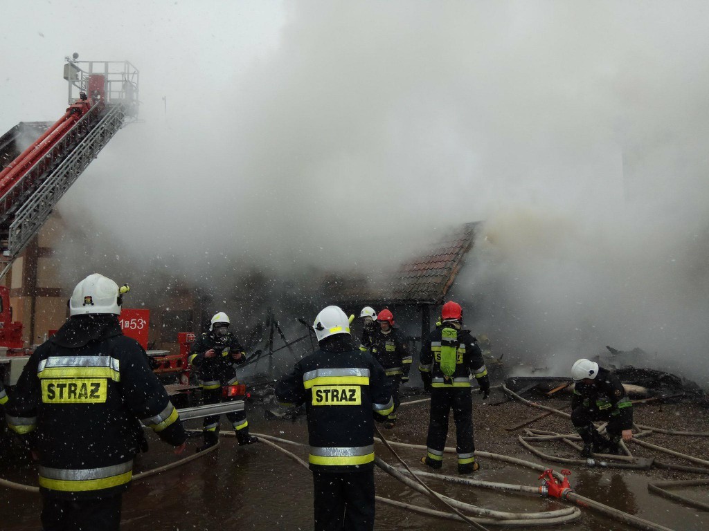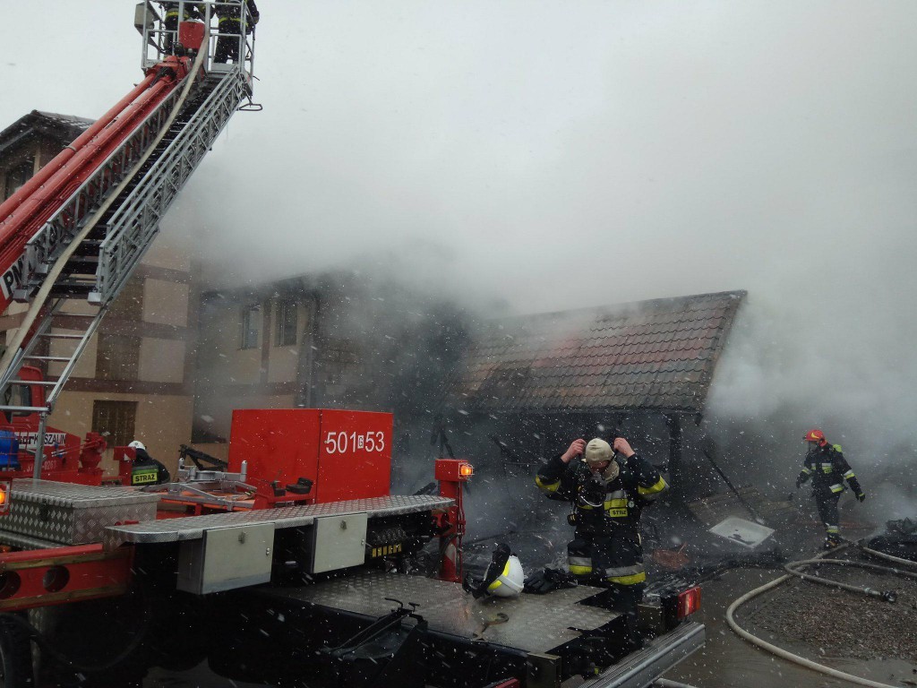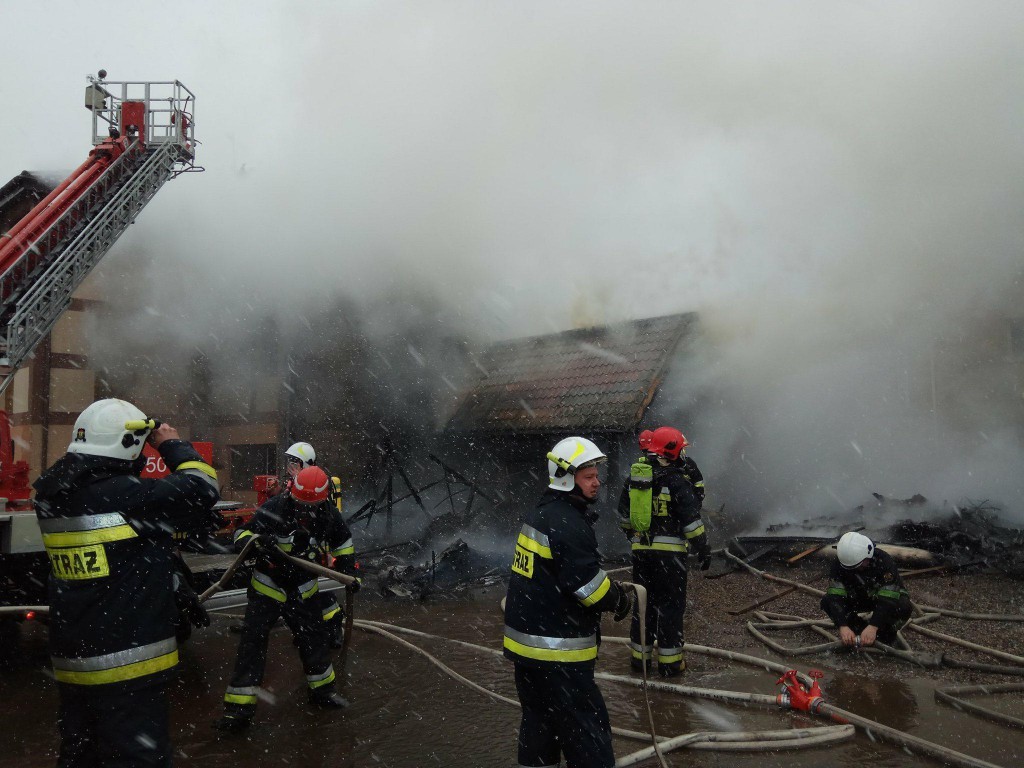 Na miejscu pracuje sześć zastępów straży pożarnej, trwa gaszenie pożaru.