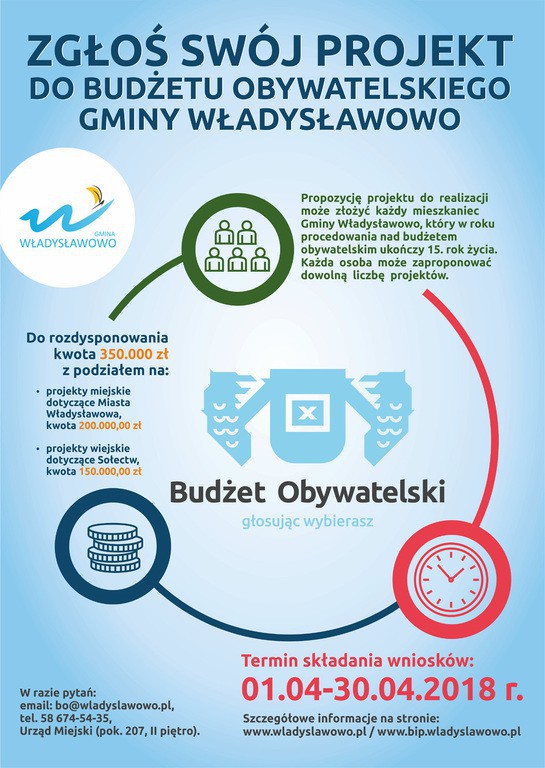 – Budżet Obywatelski to wyjątkowa okazja do rzeczywistego i bezpośredniego współdecydowania o tym, na co zostanie wydana część budżetu gminy. Daje on możliwość zgłaszania i promowania własnych ciekawych pomysłów na rzecz mieszkańców, przyczyniających się do poprawienia funkcjonowania nie tylko własnego osiedla, ale i całego miasta czy gminy – informuje wladyslawowo.pl.