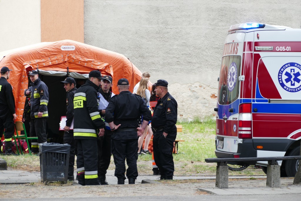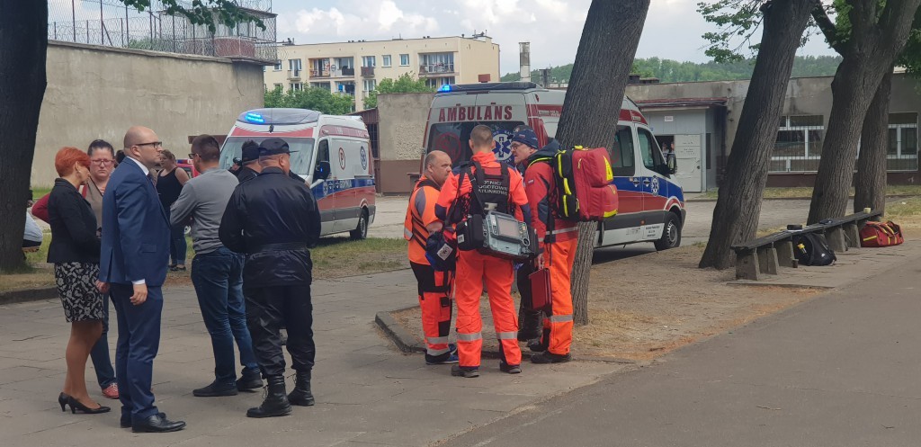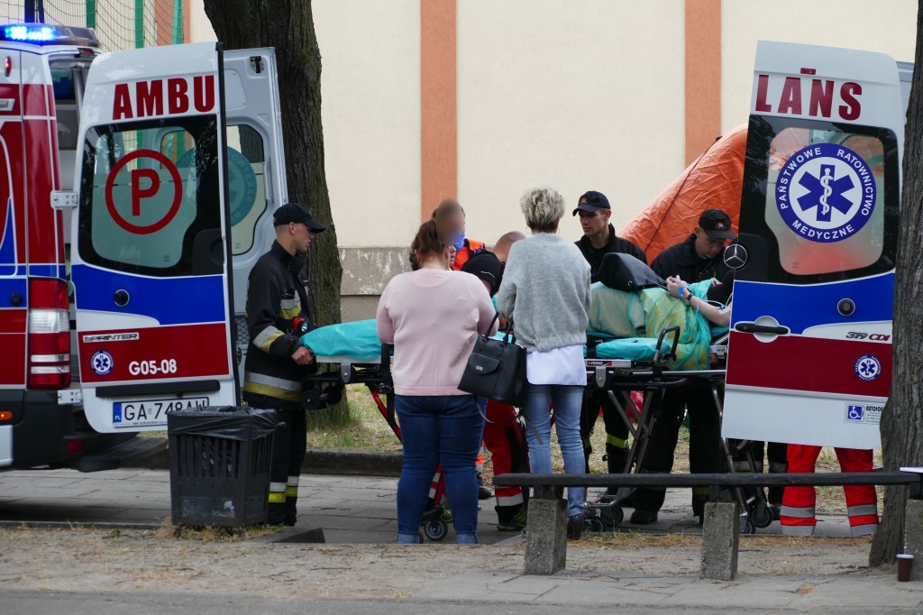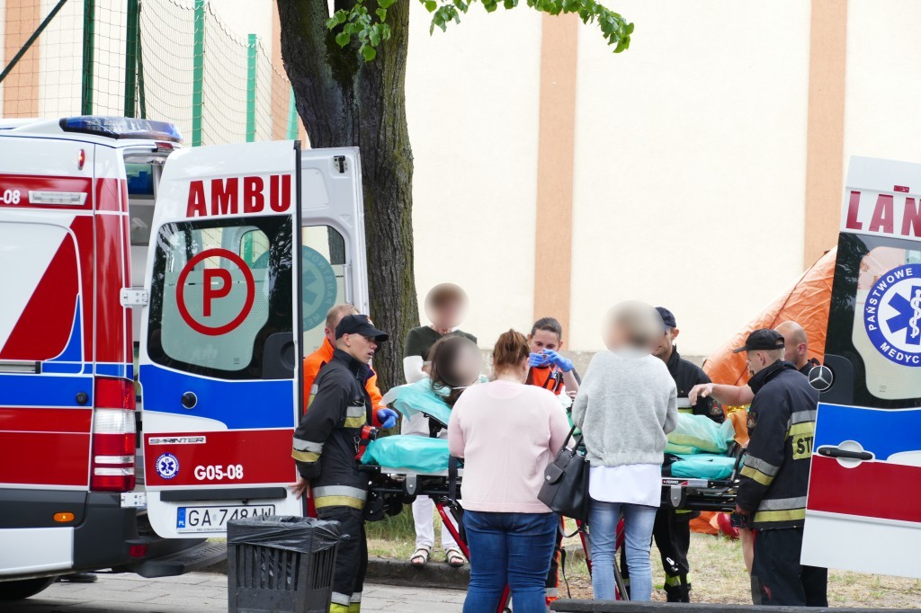 Dwa zespoły ratownictwa medycznego łącznie badały 16 osób, które uskarżały się na podrażnienia górnych dróg oddechowych. Na miejsce wezwano Lotnicze Pogotowie Ratunkowe i specjalistyczną jednostkę ratownictwa chemicznego z Gdyni. Z nieoficjalnych informacji wynika, że kilka osób straciło przytomność.