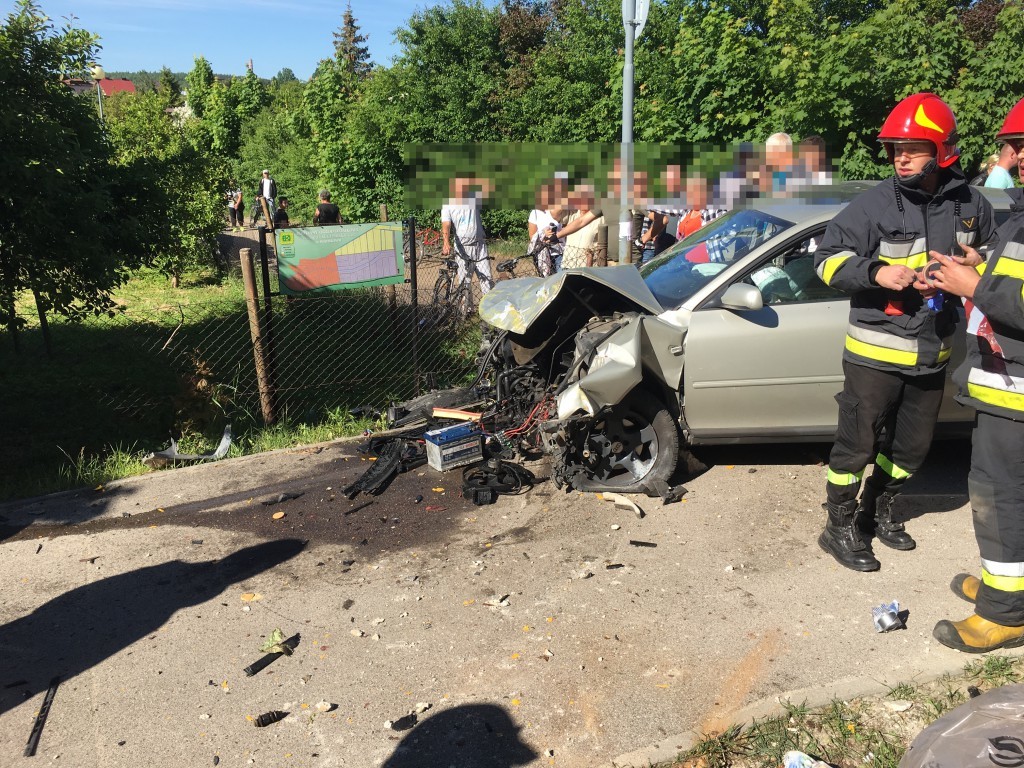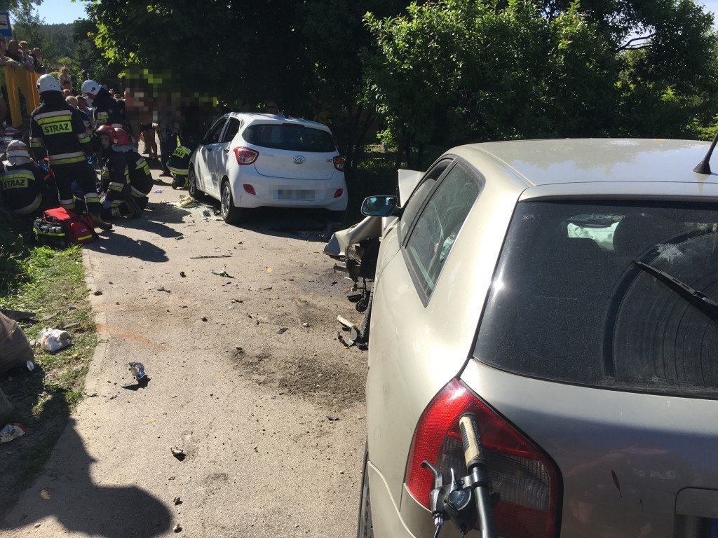 W wypadku poszkodowane zostały cztery osoby - kierowca auta i poruszająca się poboczem rodzina z dzieckiem.