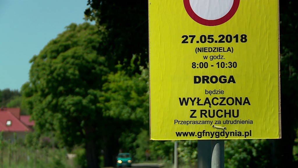 Przy drodze powiatowej biegnącej z Wejherowa do Gowina, Sychowa i dalej – w kierunku gminy Szemud pojawiły się znaki drogowe informujące o wyłączeniu z ruchu drogi w niedzielę (27 maja), w godzinach od 8:00 do 10:30. Jak się okazuje, droga ma zostać zamknięta, ze względu na planowany w tym czasie rajd rowerowy.