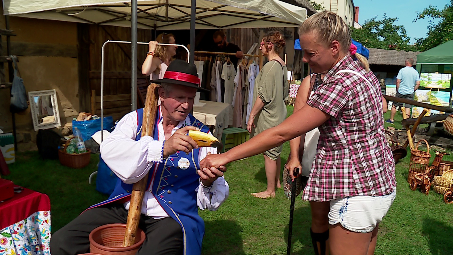 Nie brakowało pachnącego, świeżo wypiekanego chleba, miodu, ciasta czy wędlin. Rzemieślnicy chętnie tłumaczyli jak wygląda produkcja naturalnej żywności. Uczestnicy uczyli się jak dawniej wyrabiano masło oraz pracowali przy kamiennych żarnach czy kole garncarskim.