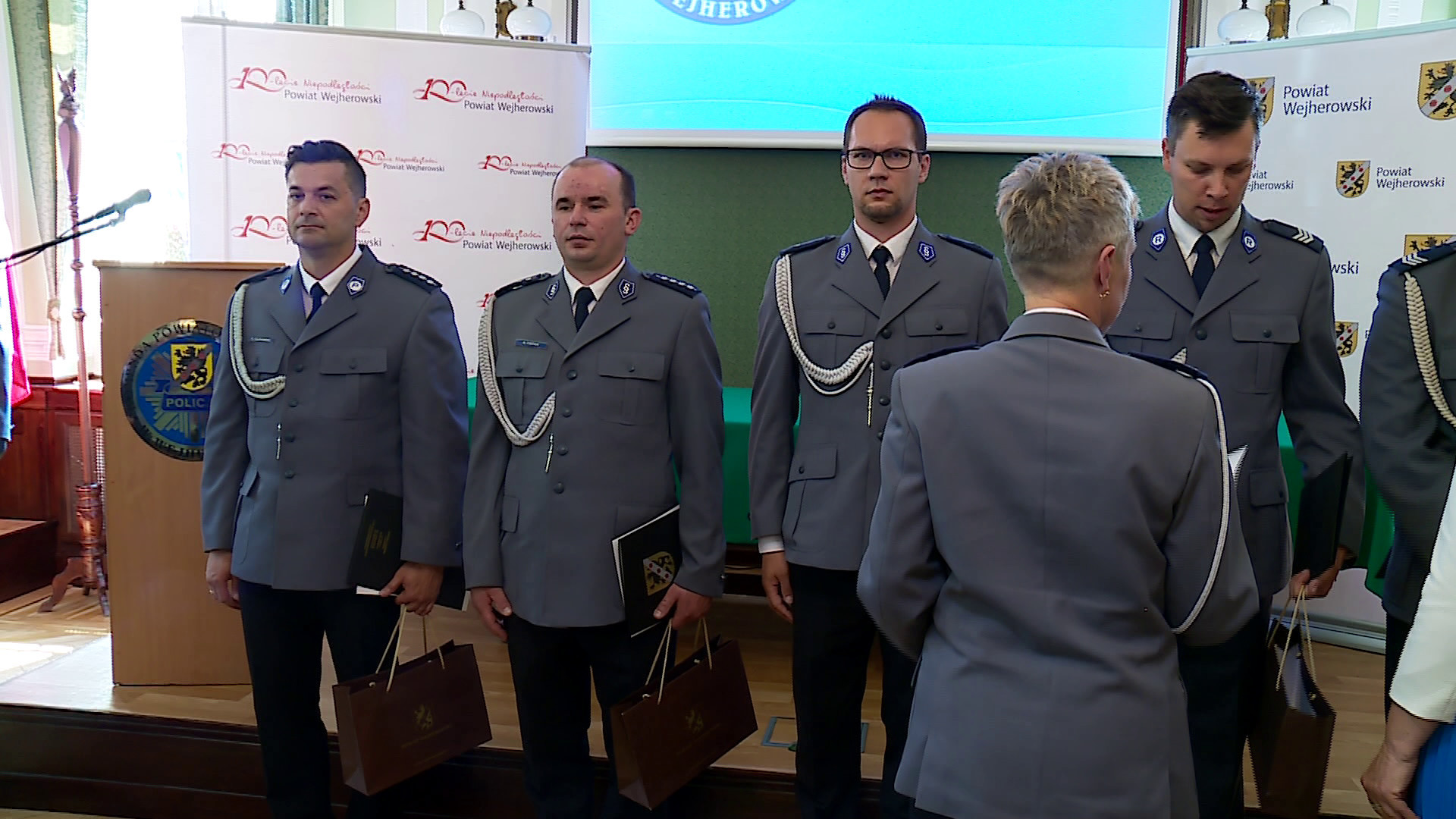 Piątkowe uroczystości odbyły się w Starostwie Powiatowym w Wejherowie. Oprócz funkcjonariuszy, udział w nich wzięli przedstawiciele władz powiatu i lokalni samorządowcy. Tradycyjnie już nie zabrakło życzeń i podziękowań.
