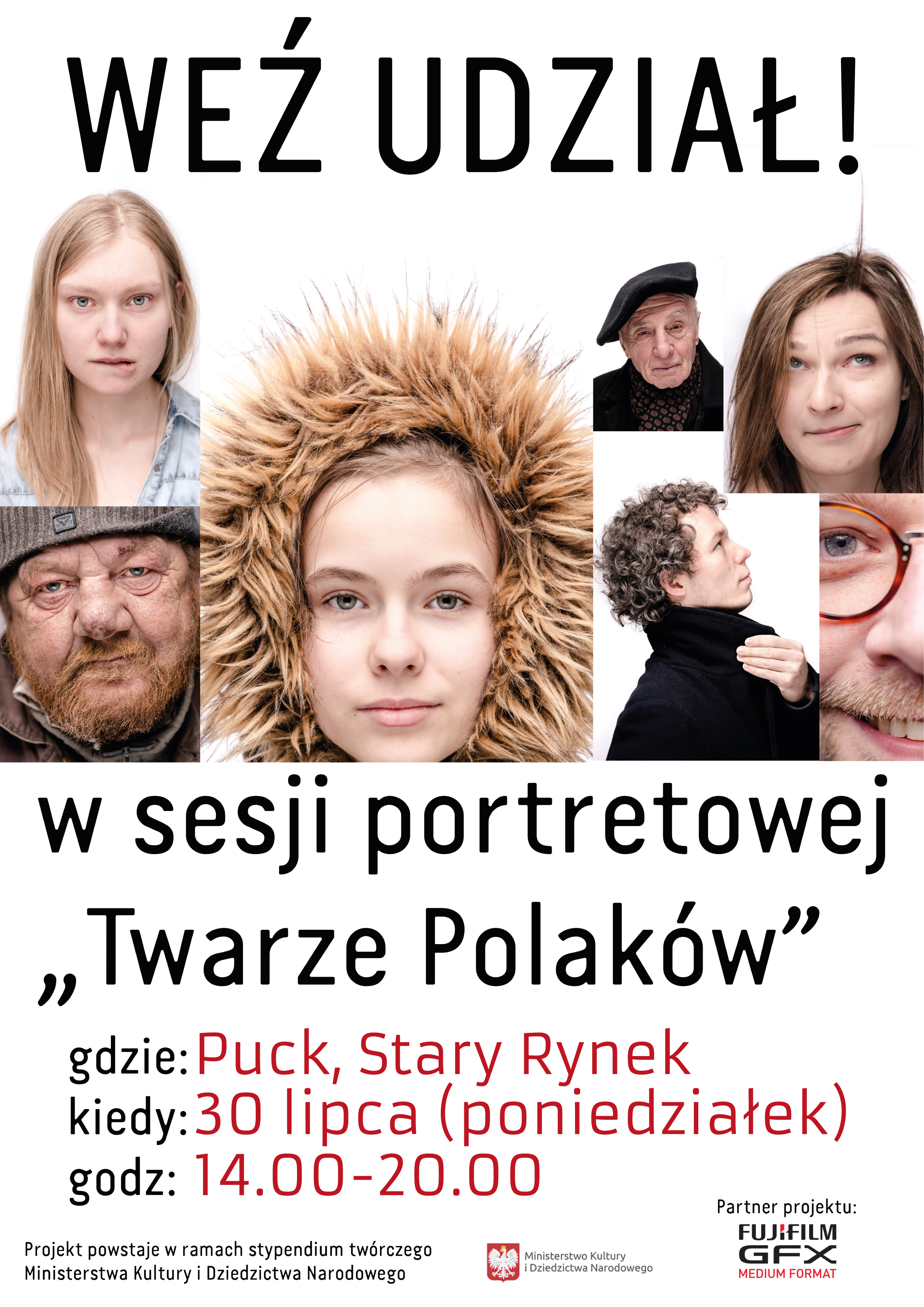"Twarze Polaków – portret społeczeństwa" to projekt fotograficzny Wojciecha Grzędzińskiego. Jego celem jest pokazanie Polaków w 2018 roku. Fotograf odwiedzi dziesiątki miast, w tym Puck.