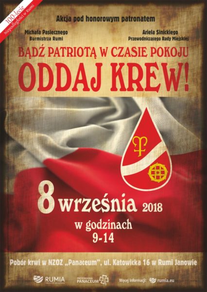 Rumia po raz kolejny włączyła się w honorową zbiórkę krwi – tym razem pod hasłem „Bądź patriotą w czasie pokoju, oddaj krew!”. Inicjatywa związana jest z obchodami 100. rocznicy odzyskania przez Polskę niepodległości.