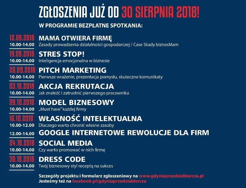 Mamy wezmą udział w ośmiu spotkaniach warsztatowych, które odbywać się będą raz w tygodniu – od 12 września do 30 października. W trakcie tych spotkań będą poznawać tajniki skutecznej komunikacji czy efektywnego szukania klienta i pracownika. Gdynianki nauczą się także między innymi podstaw marketingu i dress code’u.