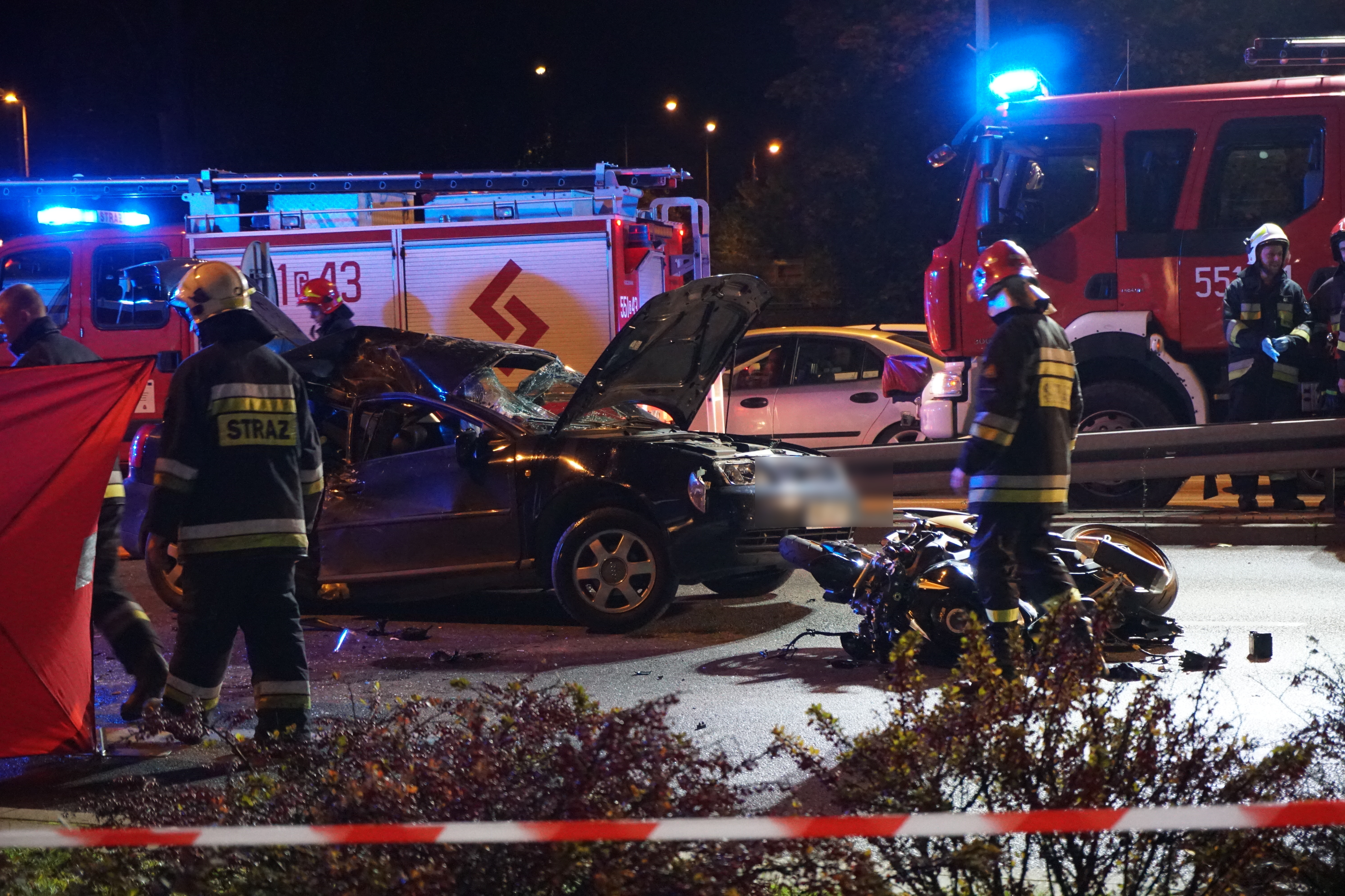 Na miejsce wezwano trzy zastępy straży pożarnej. Jak wynika z relacji świadków, do zdarzenia doszło w momencie manewru zawracania przez kierowcę auta marki Audi.