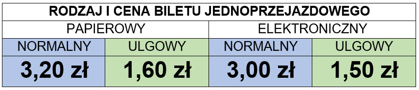 Na wszystkich liniach zwykłych i dodatkowych obowiązuje stała taryfa biletowa.