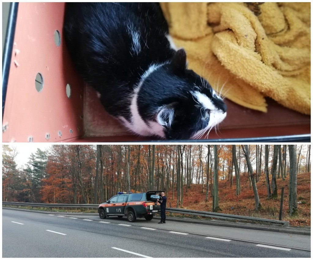 Kot prawdopodobnie został wyrzucony. Szedł przerażony pasem zieleni oddzielającym jezdnie na Estakadzie Kwiatkowskiego w Gdyni tuż przy obwodnicy.