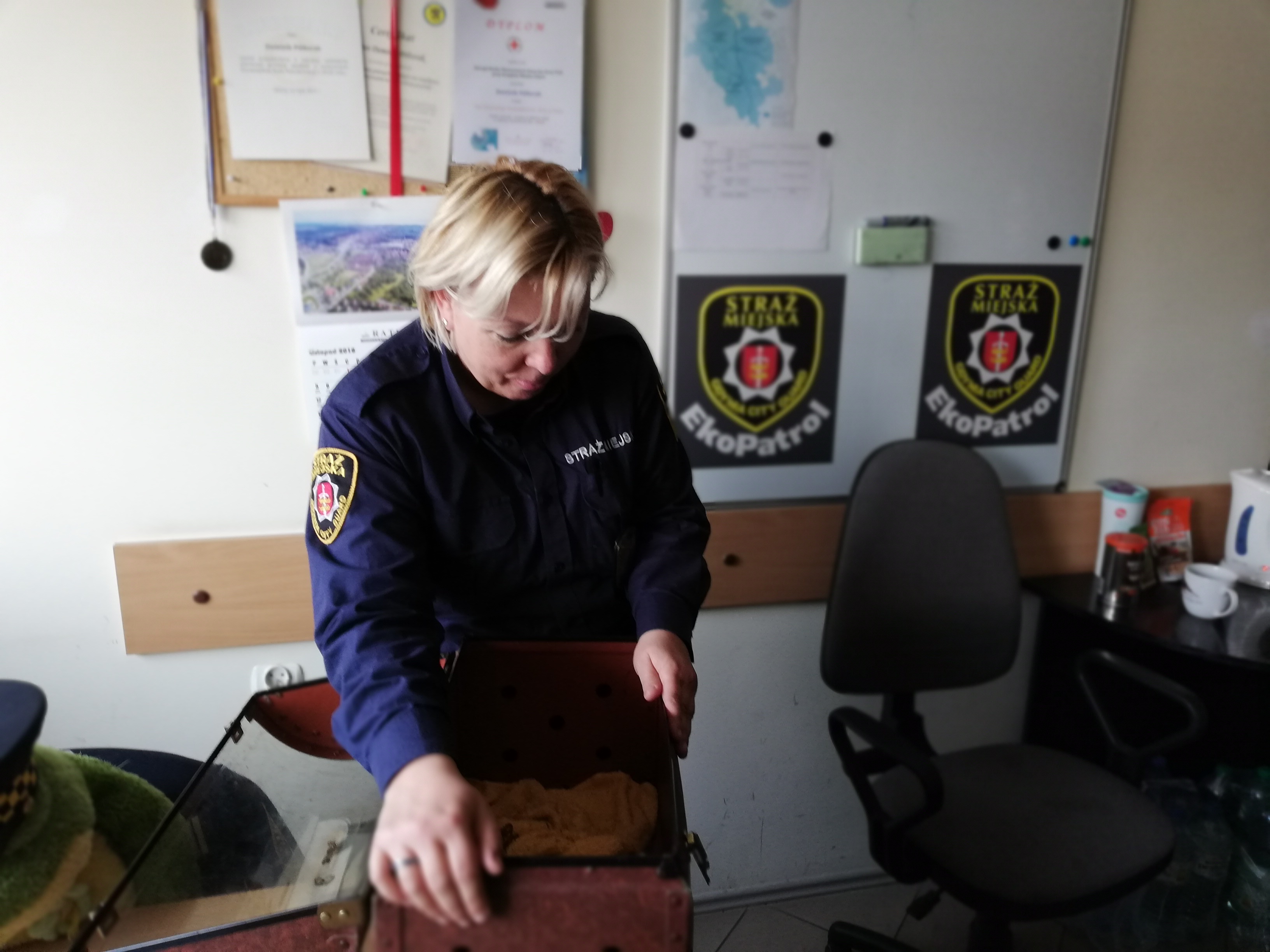 Zwierzę przebywa obecnie w domu tymczasowym u strażniczki miejskiej.