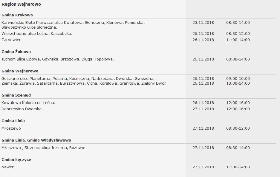 Listę pozostałych wyłączeń prądu zamieszczamy poniżej.