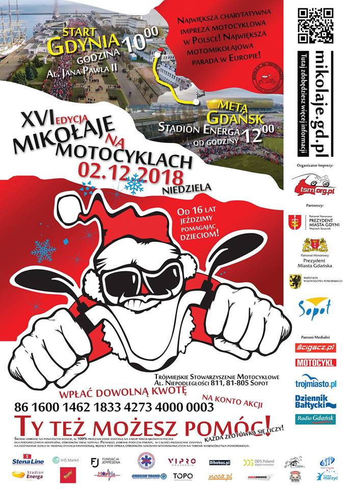 Mikołaje na Motocyklach to wielki zryw pozytywnie zakręconych użytkowników silnikowych pojazdów jednośladowych oraz quadów. Inicjatywa ma na celu pomoc dzieciakom w trudnej sytuacji materialnej, maluchom z domów dziecka i tym, które przebywają w szpitalu lub cierpią na choroby zagrażające ich życiu.