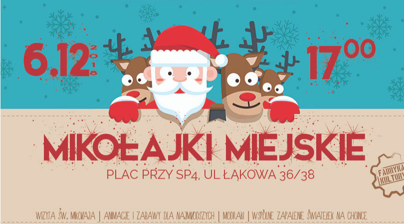 – Rodzinne Mikołajki zbliżają się wielkimi krokami. My już tradycyjnie przygotowujemy imprezę dla całych rodzin! Tym razem, inaczej niż w roku ubiegłym, spotykamy się na nowym placu przy Szkole Podstawowej nr 4 (ul. Łąkowa 36/38) Wspólne tańce, zabawa, animacje i konkursy, a do tego wizyta Olafa, świętego Mikołaja i jego pomocników! Nie obędzie się bez uroczystego odpalenia światełek na choince miejskiej! – informuje Fabryka Kultury w Redzie.
