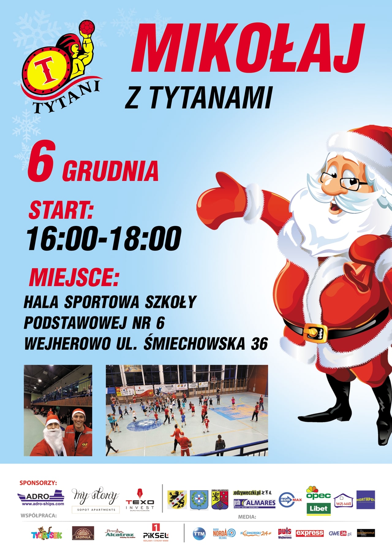 – Jak co roku serdecznie zapraszamy na imprezę Mikołajkową z Tytanami. W tym roku spotykamy się 06.12.2018 (czwartek) w Szkole Podstawowej nr 6 (ul. Śmiechowska 36). Początek imprezy „Mikołaj z Tytanami” rozpocznie się już o godzinie 16:00 przywitaniem przez samego Świętego Mikołaja. Następnie wszystkich obecnych zapraszamy na boisko, gdzie rozpocznie się festiwal gier, zabaw i konkursów przygotowanych przez klub. Na pewno każdy znajdzie coś ciekawego dla siebie i miło spędzi wspólnie z nami czas. Oczywiście wszyscy są mile widziani, a dla każdego dziecka które aktywnie włączy się w zabawę, przewidziany jest słodki poczęstunek wręczony przez Mikołaja. „Mikołaj z Tytanami”, podobnie jak piknik organizowany latem, jest podziękowaniem dla naszych kibiców za wsparcie, jakiego udzielają nam przez cały rok. Wszystkich serdecznie zapraszamy – piszą Tytani Wejherowo.