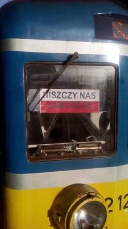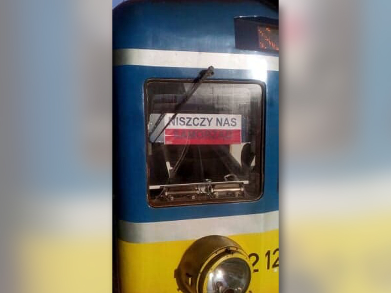Napis umieszczony na biało-czerwonej fladze i wywieszony na przedniej szybie pociągu wzbudził zaciekawienie wśród pasażerów. Okazuje się, że akcją protestacyjną zaskoczony był również zarząd spółki.