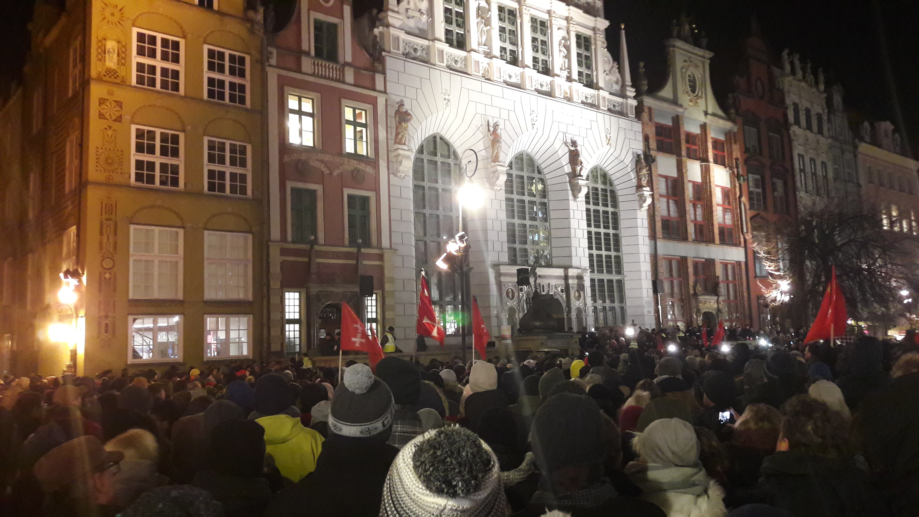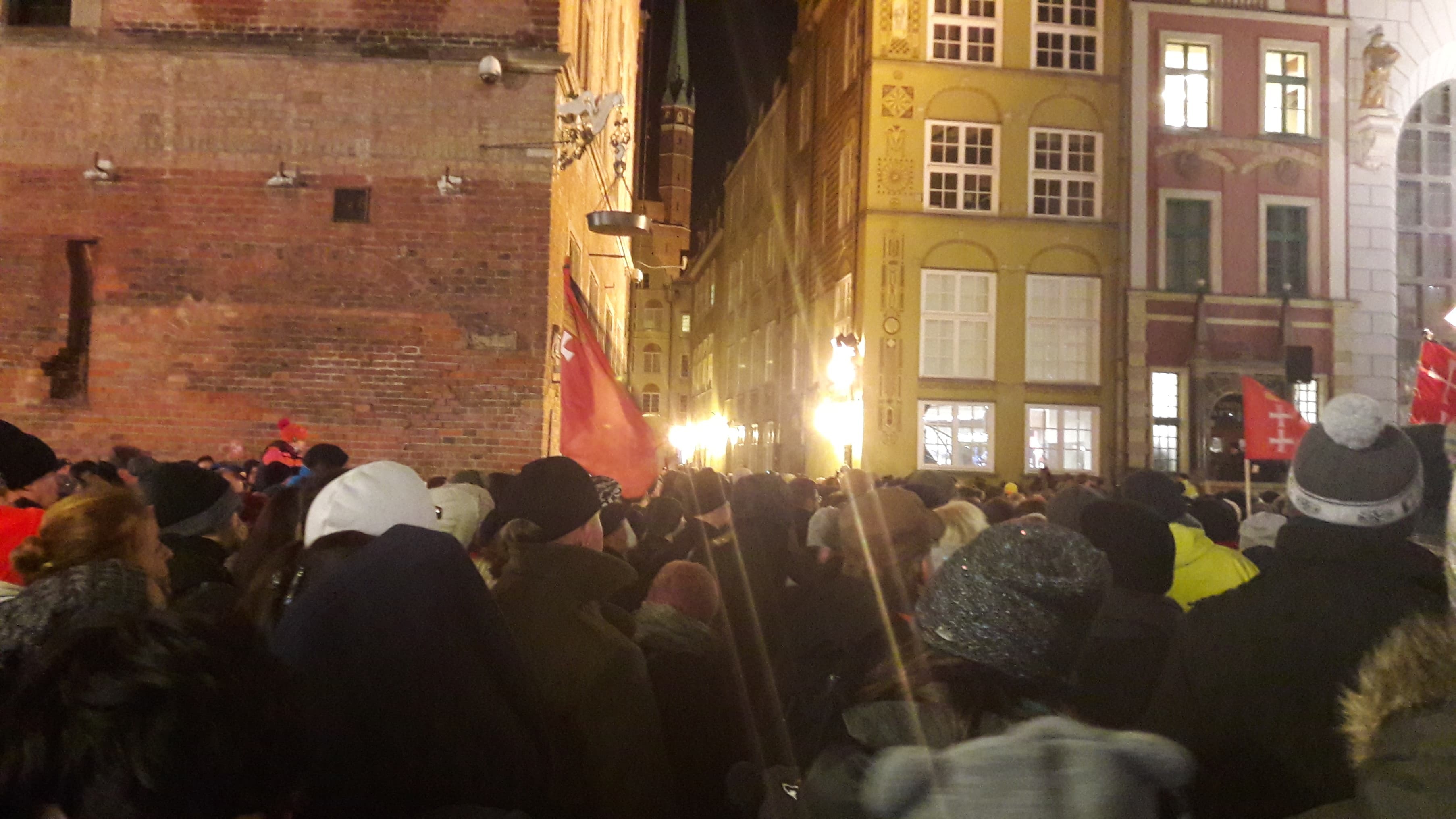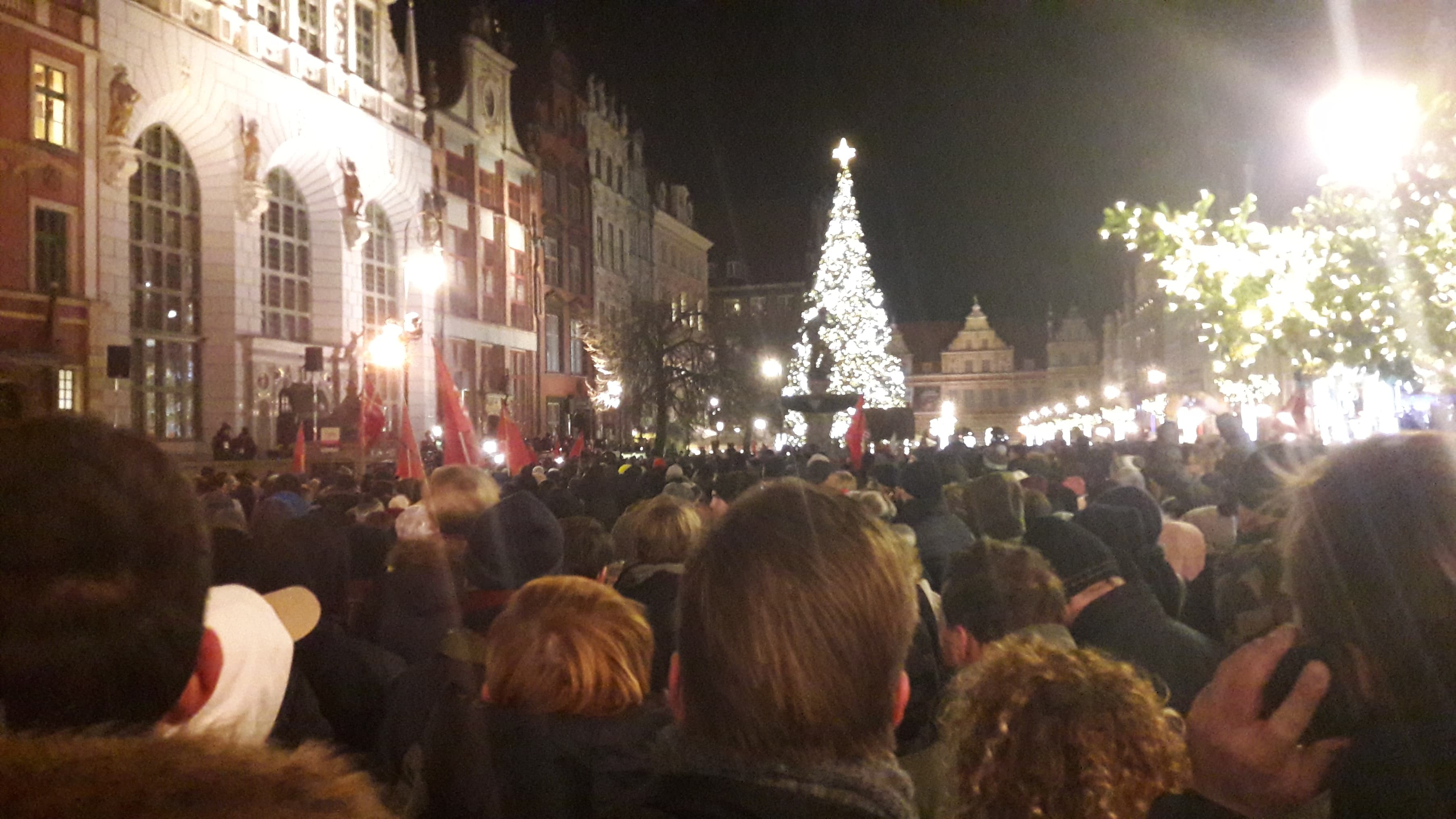 W ciszy czasami dało słyszeć się szepty, niekiedy modlitwę. Jeszcze kilka godzin temu ci sami ludzie mieli nadzieję, że Paweł Adamowicz wróci do zdrowia. Wraz z kolejnymi informacjami, które napływały z Uniwersyteckiego Centrum Klinicznego, ta nadzieja była coraz mniejsza. Ostatecznie zgasła około godziny 14:40… Wtedy było wiadomo, że prezydent Gdańska nie żyje, choć wcześniej pojawiały się już takie informacje w nieoficjalnym obiegu. Wiele osób uczestniczących w wiecu nie ukrywało, że chcą pożegnać prezydenta. Ich prezydenta. Na Targu Węglowym, pod fontanną Neptuna i przed urzędem miasta zapłonęły znicze. Wśród zebranych można było dostrzec białe róże.