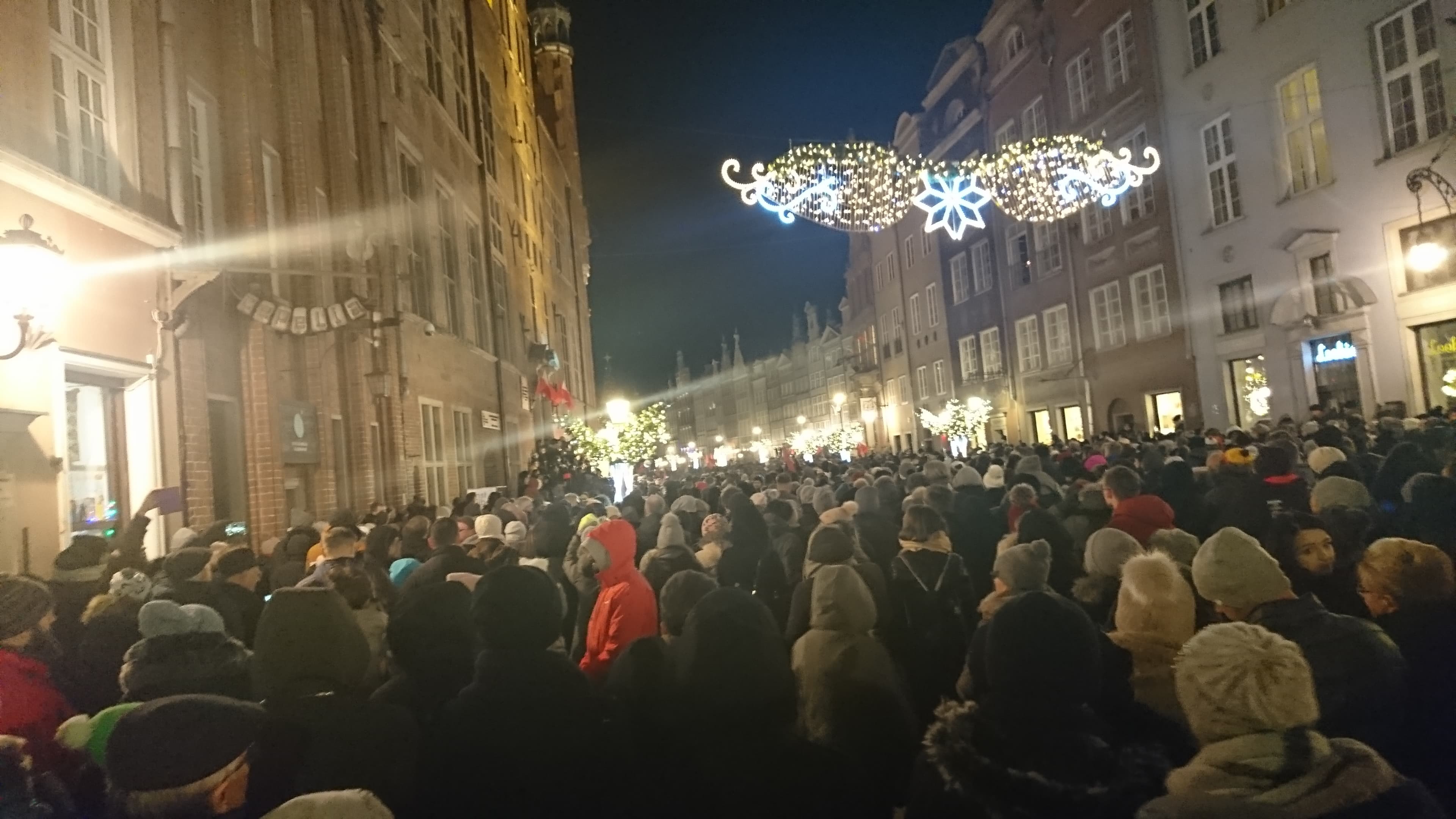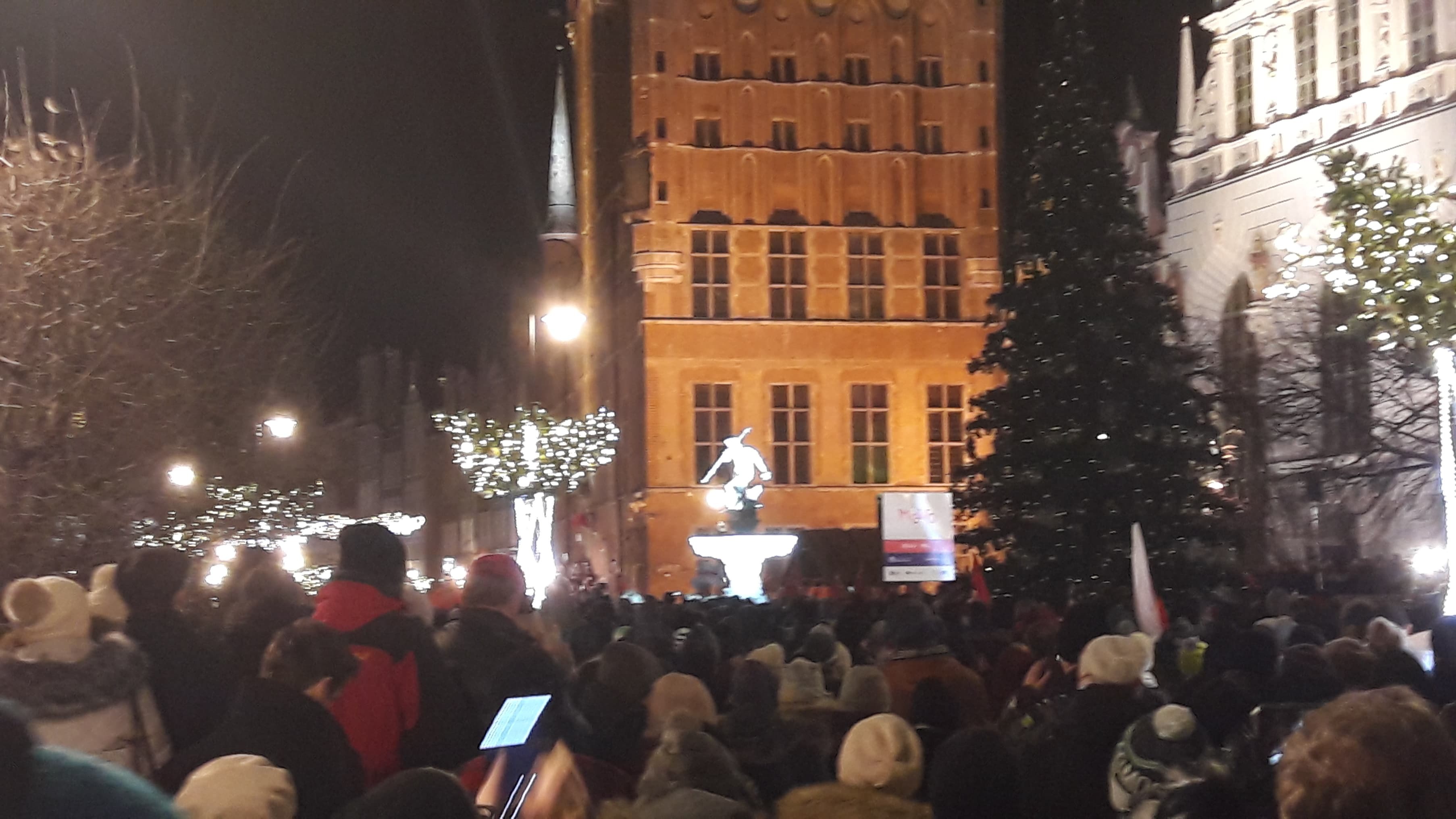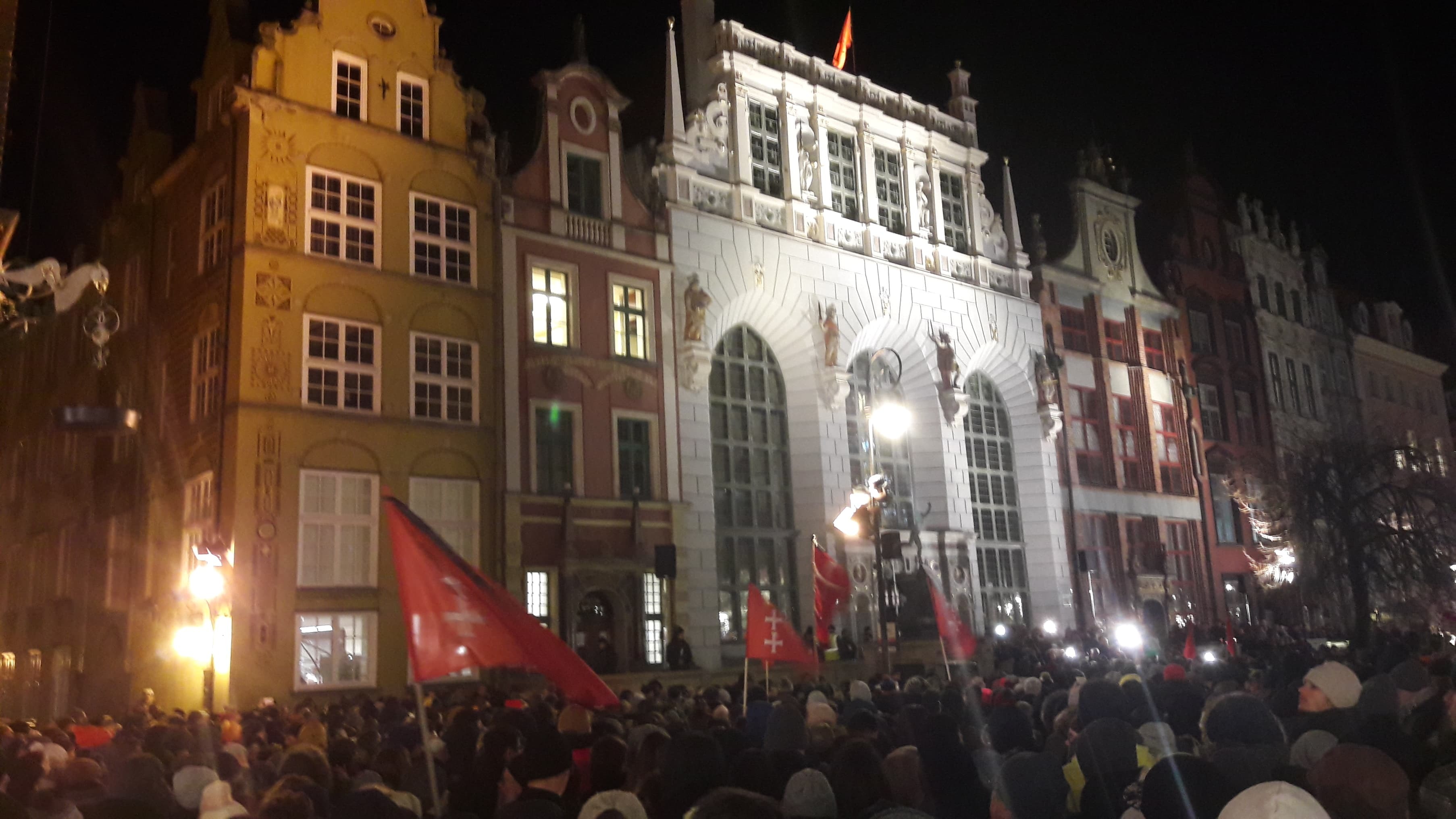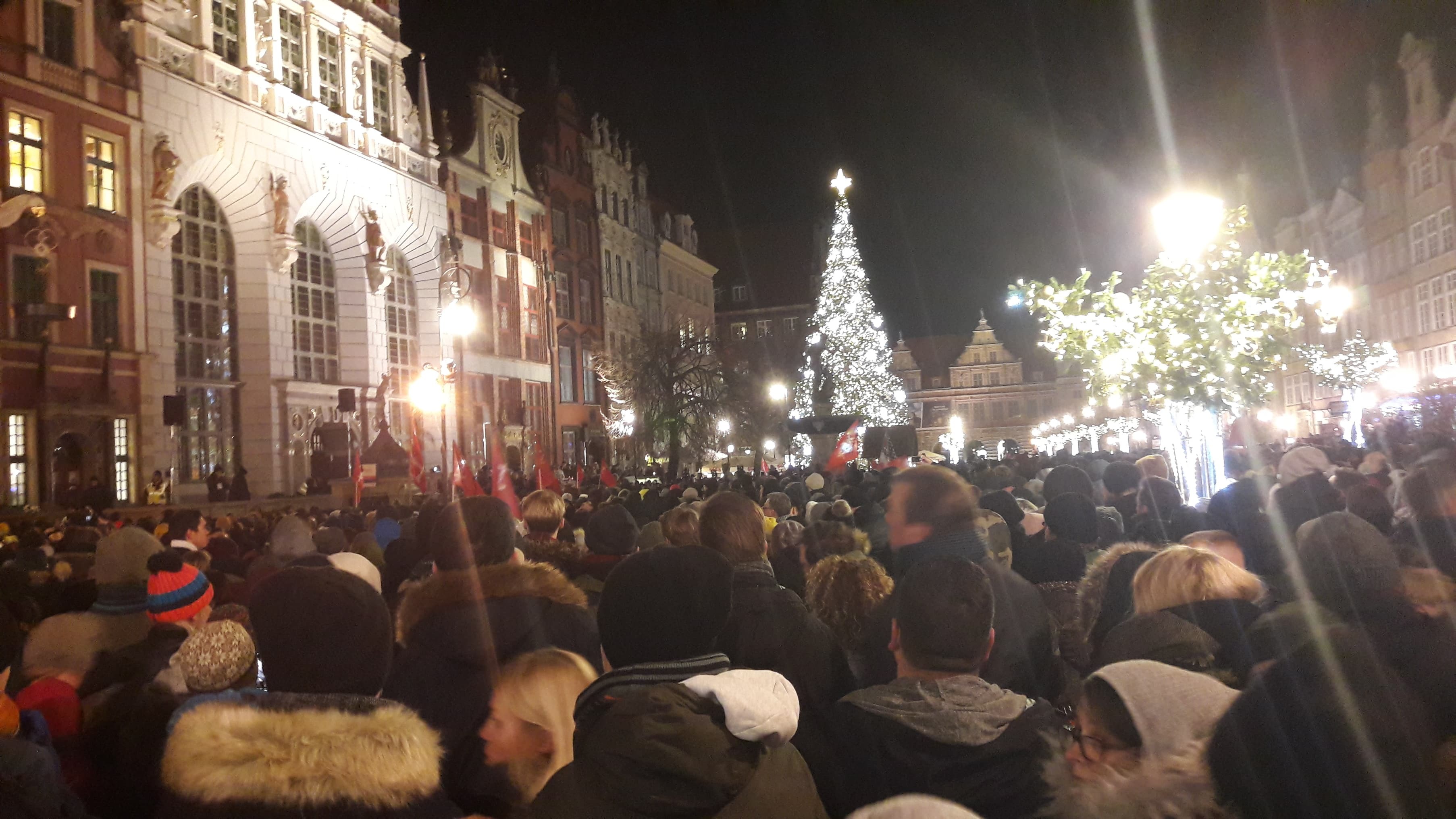 W ciszy czasami dało słyszeć się szepty, niekiedy modlitwę. Jeszcze kilka godzin temu ci sami ludzie mieli nadzieję, że Paweł Adamowicz wróci do zdrowia. Wraz z kolejnymi informacjami, które napływały z Uniwersyteckiego Centrum Klinicznego, ta nadzieja była coraz mniejsza. Ostatecznie zgasła około godziny 14:40… Wtedy było wiadomo, że prezydent Gdańska nie żyje, choć wcześniej pojawiały się już takie informacje w nieoficjalnym obiegu. Wiele osób uczestniczących w wiecu nie ukrywało, że chcą pożegnać prezydenta. Ich prezydenta. Na Targu Węglowym, pod fontanną Neptuna i przed urzędem miasta zapłonęły znicze. Wśród zebranych można było dostrzec białe róże.