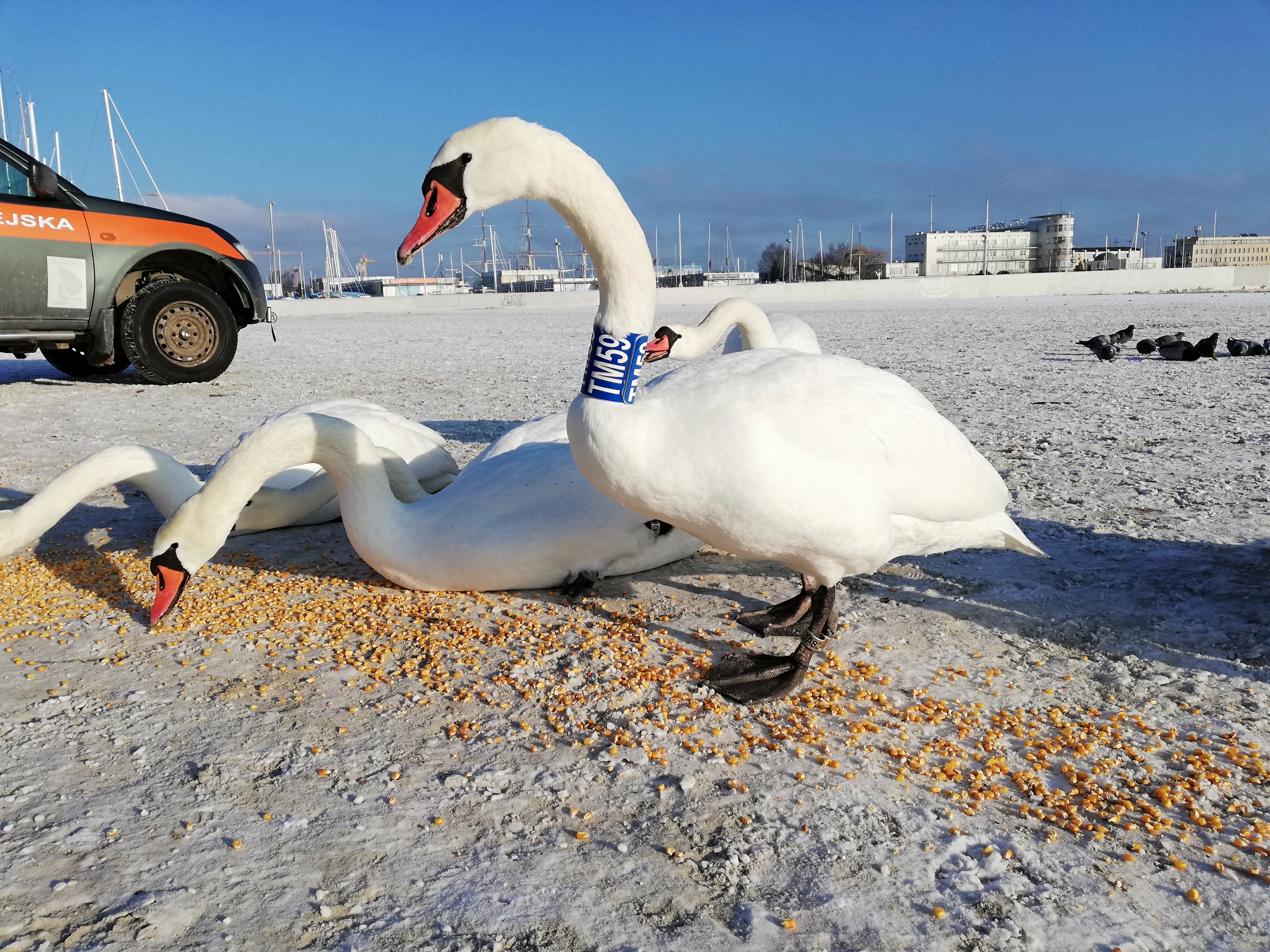 Na plażach w Gdyni, głównie na plaży miejskiej oraz plaży w Orłowie, pojawia się łabędź z oznakowaniem na szyi w formie plastikowej obroży. Ptak jest zdrowy, nic mu nie dolega. Obroże takie są zakładane ptakom przez naukowców – ornitologów – uspokaja Leonard Wawrzyniak, rzecznik gdyńskiej straży miejskiej.