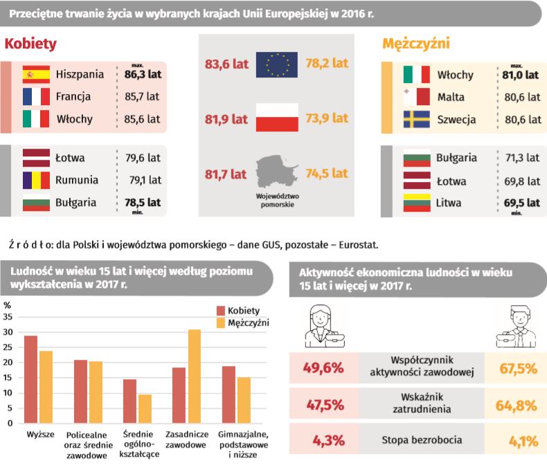 – W 2017 roku na Pomorzu mieszkało o ponad 60 tysięcy więcej kobiet niż mężczyzn (odpowiednio: 1,192 mln i 1,131 mln).
