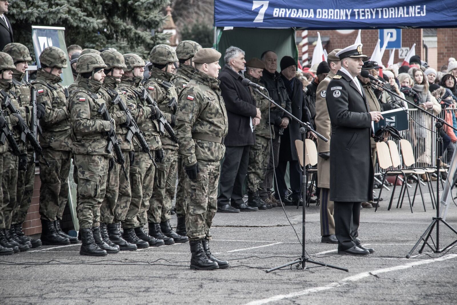 – Od kilku tygodni 7. Pomorska Brygada Obrony Terytorialnej nosi imię kpt. mar. Adama Dedio. Patron brygady był uczestnikiem wojny obronnej 1939 roku. Przez kolejne wojenne lata działał w AK. Nie mogąc pogodzić się z powojenną rzeczywistością polityczną, brakiem suwerenności i prawdziwej wolności Polski, pod koniec 1945 roku wstąpił w struktury XII Okręgu Gdańsk (Morskiego) Narodowego Zjednoczenia Wojskowego działającego na terenie Wybrzeża pod kryptonimem "Semper Fidelis Victoria". Po prowokacji ze strony UB został zatrzymany 17 maja 1946 roku, a następnie skazany na karę śmierci. Wyrok wykonano 14 kwietnia 1947 roku. Adama Dedio pochowano w zaniedbanej części cmentarza Garnizonowego w Gdańsku. Na tabliczce nie było imienia i nazwiska, a jedynie numer: 169. Bo pamięć o tym, kogo skrywa ziemia, miała umrzeć razem z wyklętym żołnierzem – wyjaśnia Maciej Szalbierz z 7 PBOT.