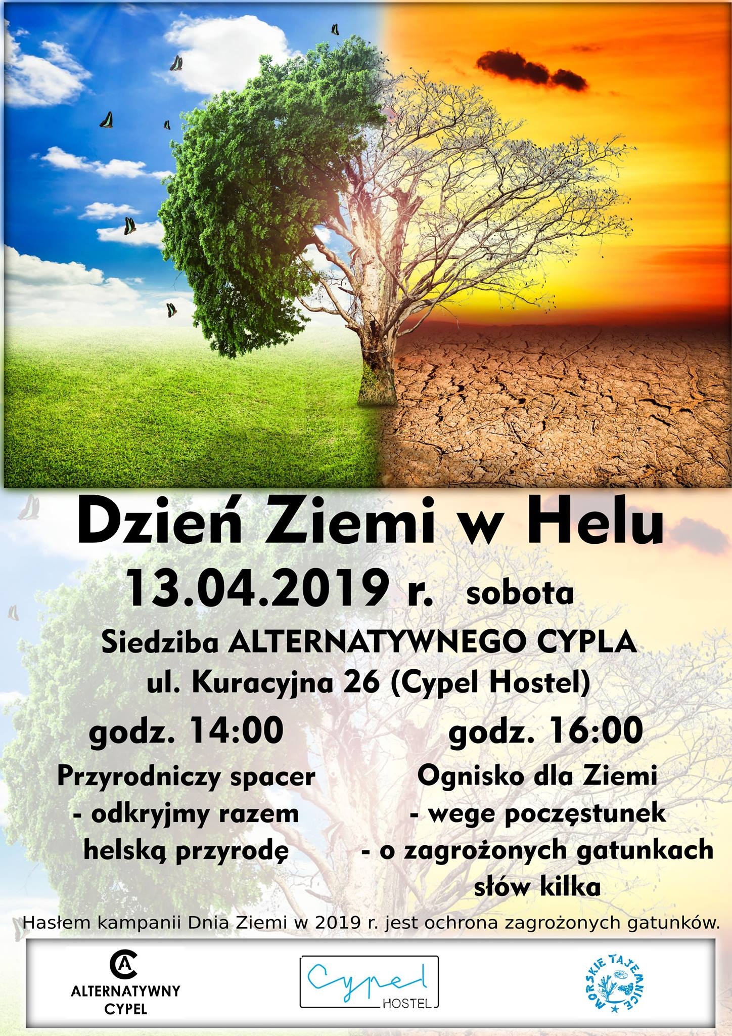 Osoby chętne do wzięcia udziału w wydarzeniu mogą stawić się w siedzibie Stowarzyszenia Alternatywny Cypel (ul. Kuracyjna 26, Hel, Cypel Hostel). O godzinie 14:00 odbędzie się spacer przyrodniczy, w trakcie którego mieszkańcy Helu będą mogli poznawać lokalną przyrodę i przy okazji przyłączyć się do akcji sprzątania ziemi. Dwie godziny później zaplanowano wspólne ognisko z wegańskim poczęstunkiem. W tym czasie będzie można porozmawiać o zagrożonych gatunkach zwierząt.