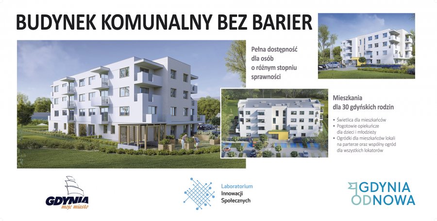 "Dom bez barier", czyli nowoczesny blok komunalny będzie posiadał cztery kondygnacje i pomieści 30 lokali jedno-, dwu- i trzypokojowych. W budynku zmieści się także ogólnodostępna świetlica, przestronna klatka schodowa oraz winda. Budynek będzie przyjazny osobom niepełnosprawnym.