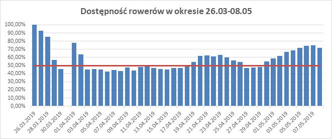 Mimo, że od kilku dni notuje się wzrost dostępności rowerów MEVO, a system osiągnął poziom 70 proc. w dalszym ciągu jest nieakceptowalny przez zleceniodawcę.