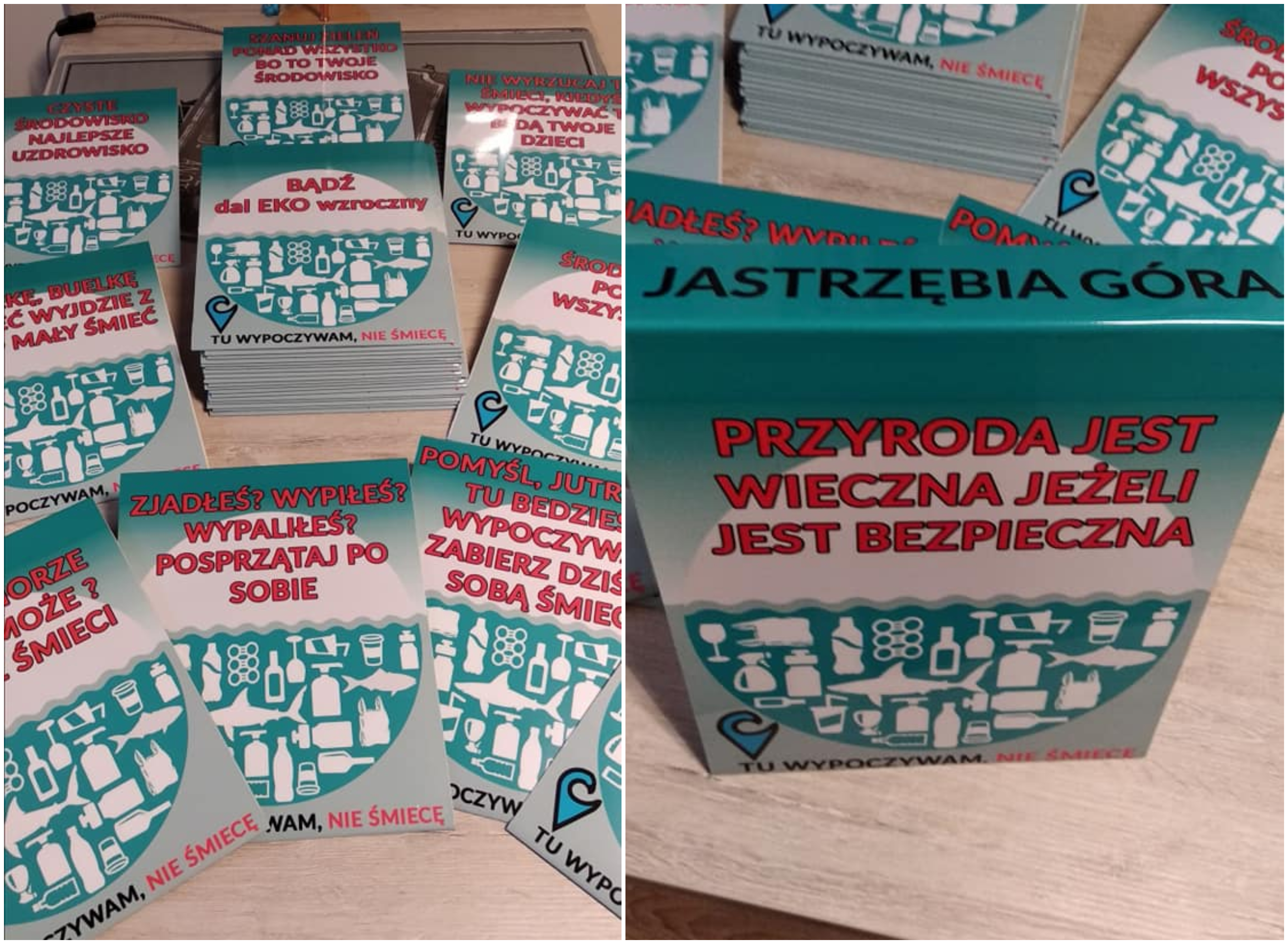 Śmieci na plażach i wokół nich to problem, któremu co roku muszą stawiać czoła włodarze nadmorskich miejscowości. Nieczystości często pozostawiane są na piasku, jednak śmieci można znaleźć również w lasach nieopodal. Tak jest m.in. w Jastrzębiej Górze, gdzie na klifach leżą puste butelki i opakowania po żywności. Sołtys Jastrzębiej Góry wpadł na pomysł, aby na każdym kroku przypominać turystom i mieszkańcom o ekologicznym zachowaniu.
