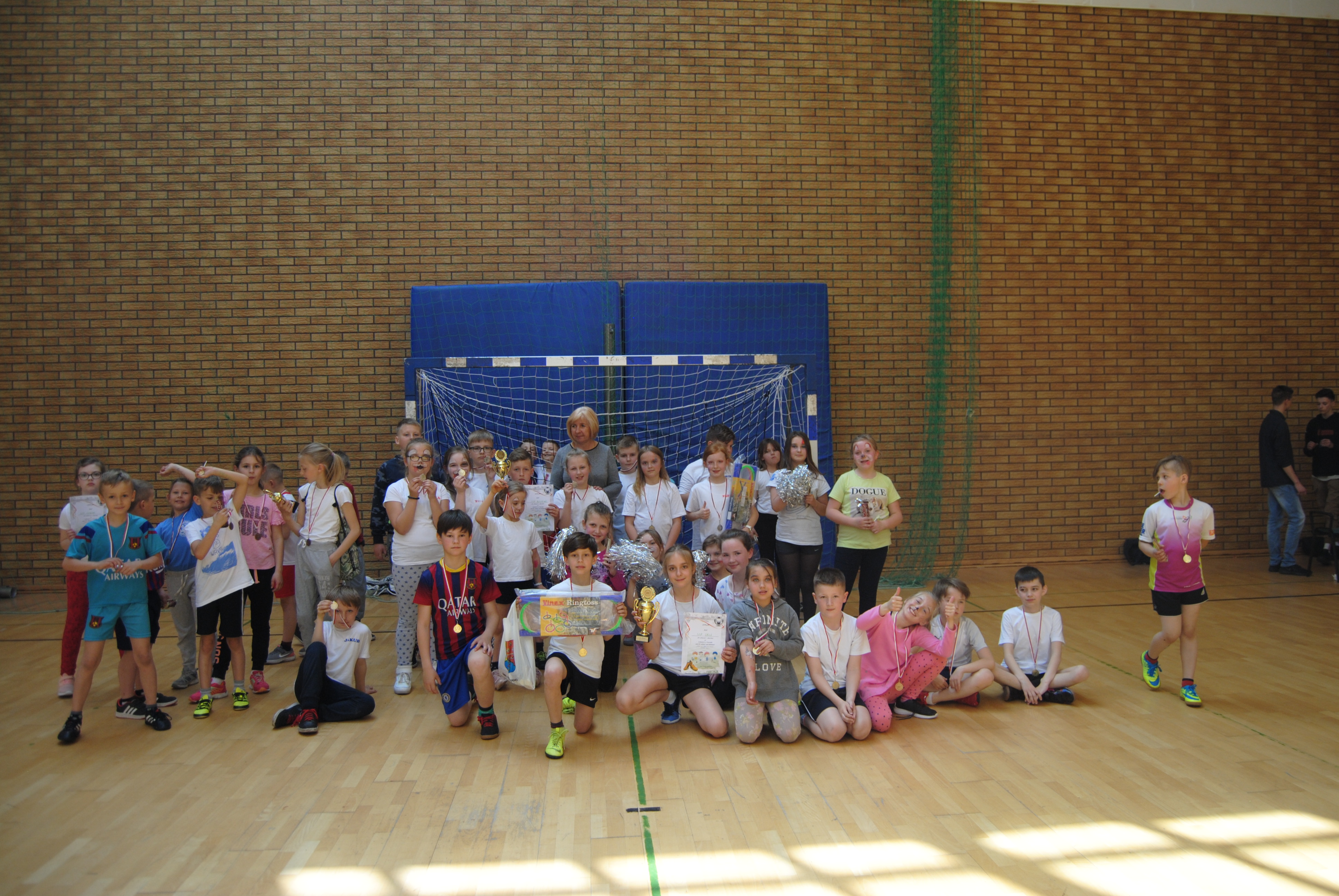 – Podczas gdy poszczególne roczniki zmagały się z konkurencjami, inni mogli skorzystać z malowania buziek, wzmocnić się słodkościami – relacjonują. – Na koniec wielkiego, dziecięcego święta wicedyrektor Sabina Zima wraz z organizatorami Joanną Syska i Beatą Brzoskowską-Markiewicz wręczyły medale, puchary, słodkości i nagrody sportowe ufundowane przez wójta gminy Henryka Skwarło.