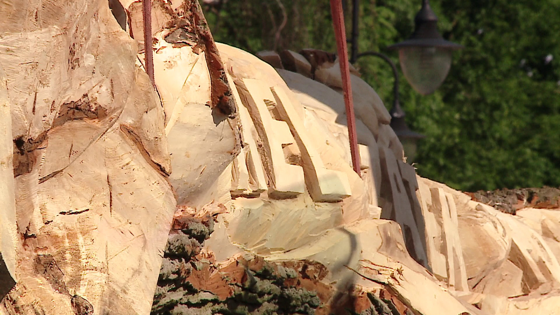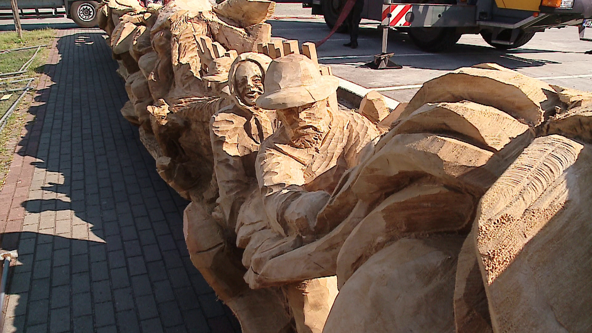 – Prace trwały od dwóch tygodni pod Bydgoszczą. Właściwie nie było żadnych kłopotów, takich jak ścinka, czy problemów logistycznych. Kłopoty były jedynie z jakością materiału, ponieważ drzewo rosło od 150 lat i wielu miejscach było bardzo mocno spróchniałe. Stąd decyzja tamtejszego urzędu o wycince – wyjaśnia Robert Wyskiel, artysta i wykonawca rzeźby.