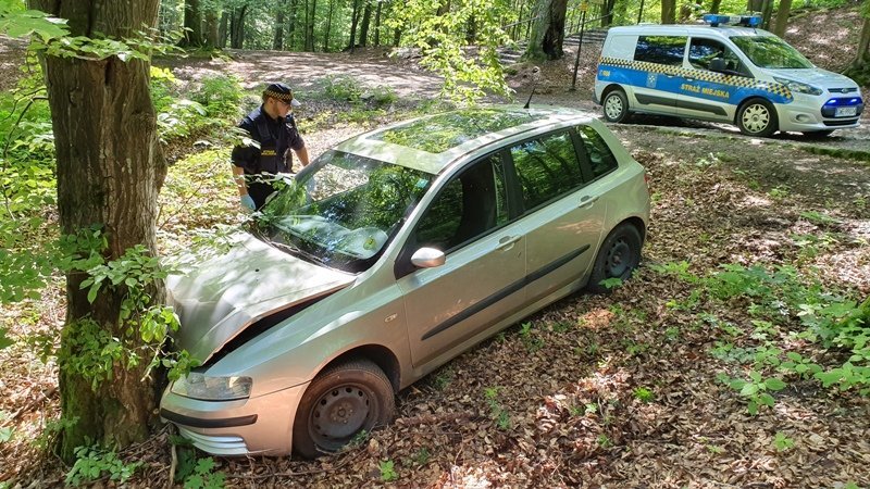 W czwartek 11 lipca przed południem dyżurny straży miejskiej otrzymał zgłoszenie, że na terenie leśnym na Kalwarii Wejherowskiej, a dokładnie przy drodze dla pieszych prowadząca do kaplicy św. Weroniki stoi rozbity samochód.