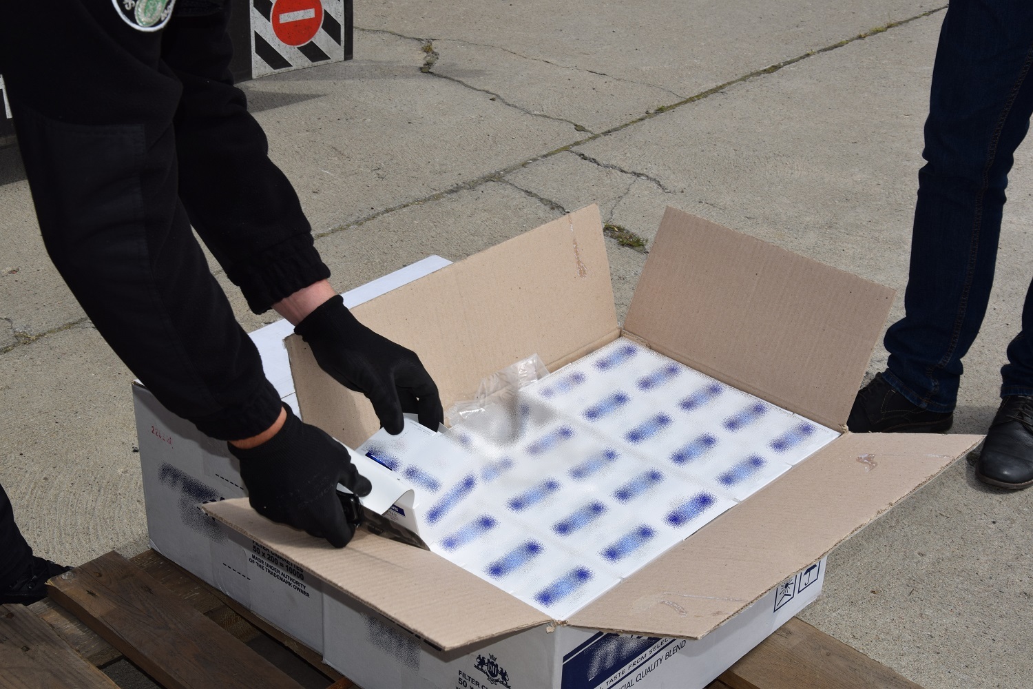 Kontener wypełniony był niemal całkowite wyrobami tytoniowymi. Tym razem przemycanym towarem okazały się papierosy typu „slim", przemytnikom udało się zatem upchnąć o połowę więcej nielegalnego towaru niż byłoby to możliwe w przypadku transportu standardowych papierosów.