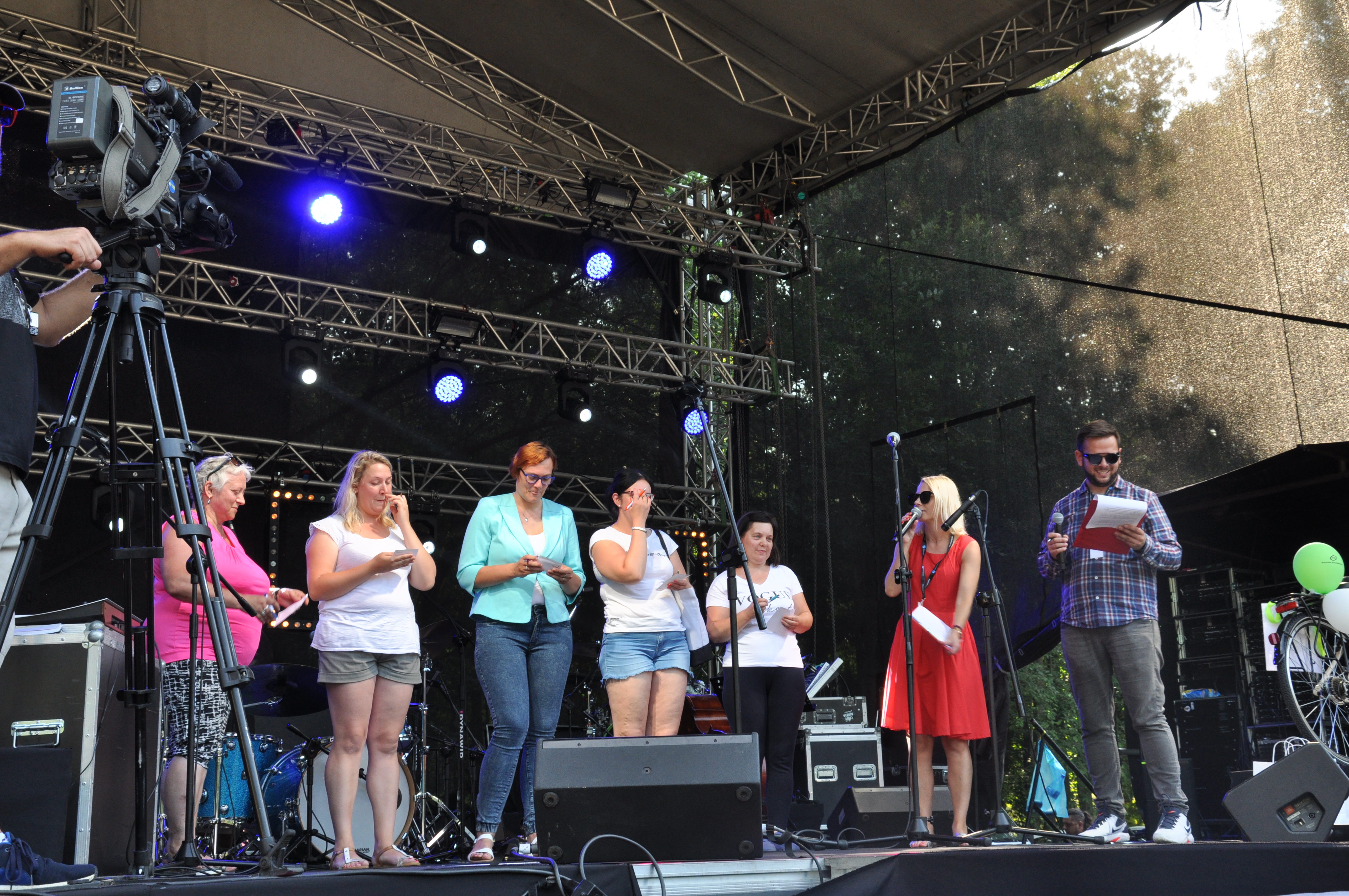 Zgodnie z zapowiedziami, główna impreza zaczęła się po godzinie 16:30. I od razu wystartowaliśmy z jedną z naszych głównych zabaw – Konkursem dla Pań. Pięć uczestniczek musiało odgadnąć tytuły „wygwizdanych” piosenek. Ostatecznie najwięcej punktów udało się zdobyć pani Annie, która wygrała główną nagrodę, czyli rower damski.