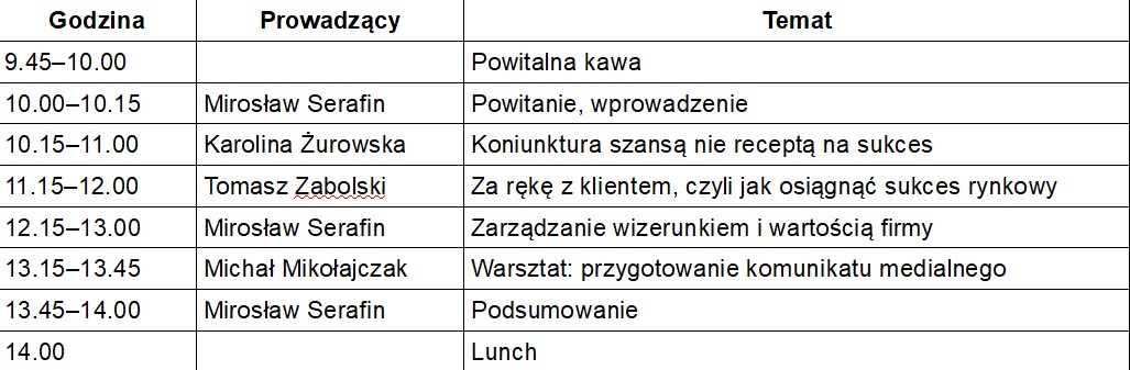 Te zagadnienia będą tematem szkolenia „Jak wykorzystać koniunkturę na rynku”, by działać skuteczniej i być gotowym na nieprzewidziane zmiany. Temat jest uniwersalny, zapraszamy więc do udziału przedstawicieli wszystkich firm, bez względu na wielkość, rodzaj prowadzonej działalności czy formę organizacyjną. Wśród prelegentów pojawią się m.in. Karolina Żurowska, prezes Kaszubskiego Banku Spółdzielczego; Tomasz Zabolski, prezes Yellow Group; Mirosław Serafin, dyrektor Twojej Telewizji Morskiej.