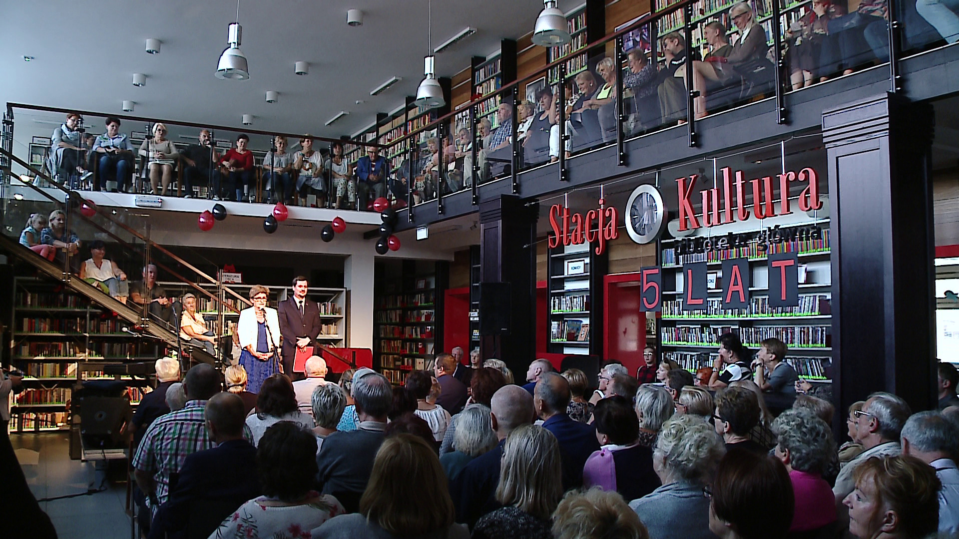 Podczas uroczystego świętowania Stacja Kultura wypełniona była po brzegi. Gościnny występ Hanny Śleszyńskiej, aktorki filmowej i teatralnej, przyciągnął tłumy. Jubileusz biblioteki wspólnie świętowali goście, pracownicy, czytelnicy, jak i przedstawiciele władz miasta. Uroczystość otworzyła Krystyna Laskowicz, dyrektorka biblioteki.
