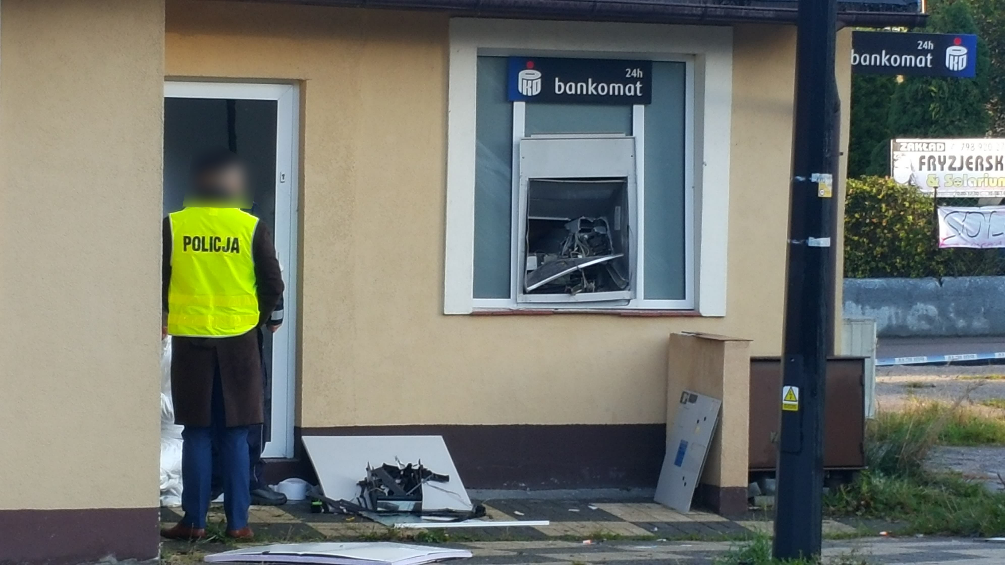 Obecnie teren jest zabezpieczony przez policjantów. Na miejscu pracują też technicy kryminalistyki. Nie wiadomo, czy udało się zabezpieczyć nagranie z monitoringu bankomatu ani jaka kwota gotówki została skradziona. Nieoficjalnie udało się nam ustalić, że może chodzić o kilkadziesiąt tysięcy złotych.