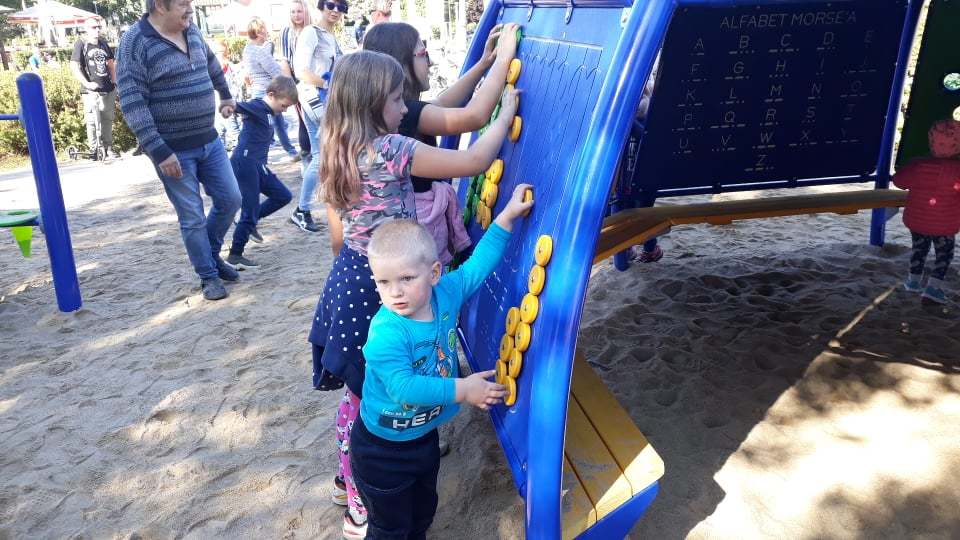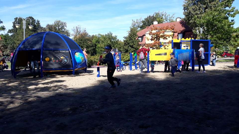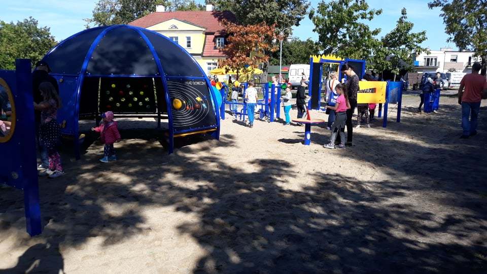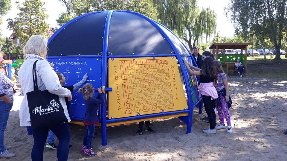 W obrębie placu zabaw powstały m.in. huśtawka w kształcie bocianiego gniazda, gra twister, ścianka wspinaczkowa, piaskownica naukowa, mini-planetarium, muzyczne tablice z bębnami czy scenka teatralna. Dzieci będą miały możliwość kształcić się w trzech strefach: naukowej, sportowej i artystycznej. Poprzez zabawę najmłodsi będą pracować nad swoją sprawnością umysłową i fizyczną, a także nad kreatywnością i wyobraźnią.