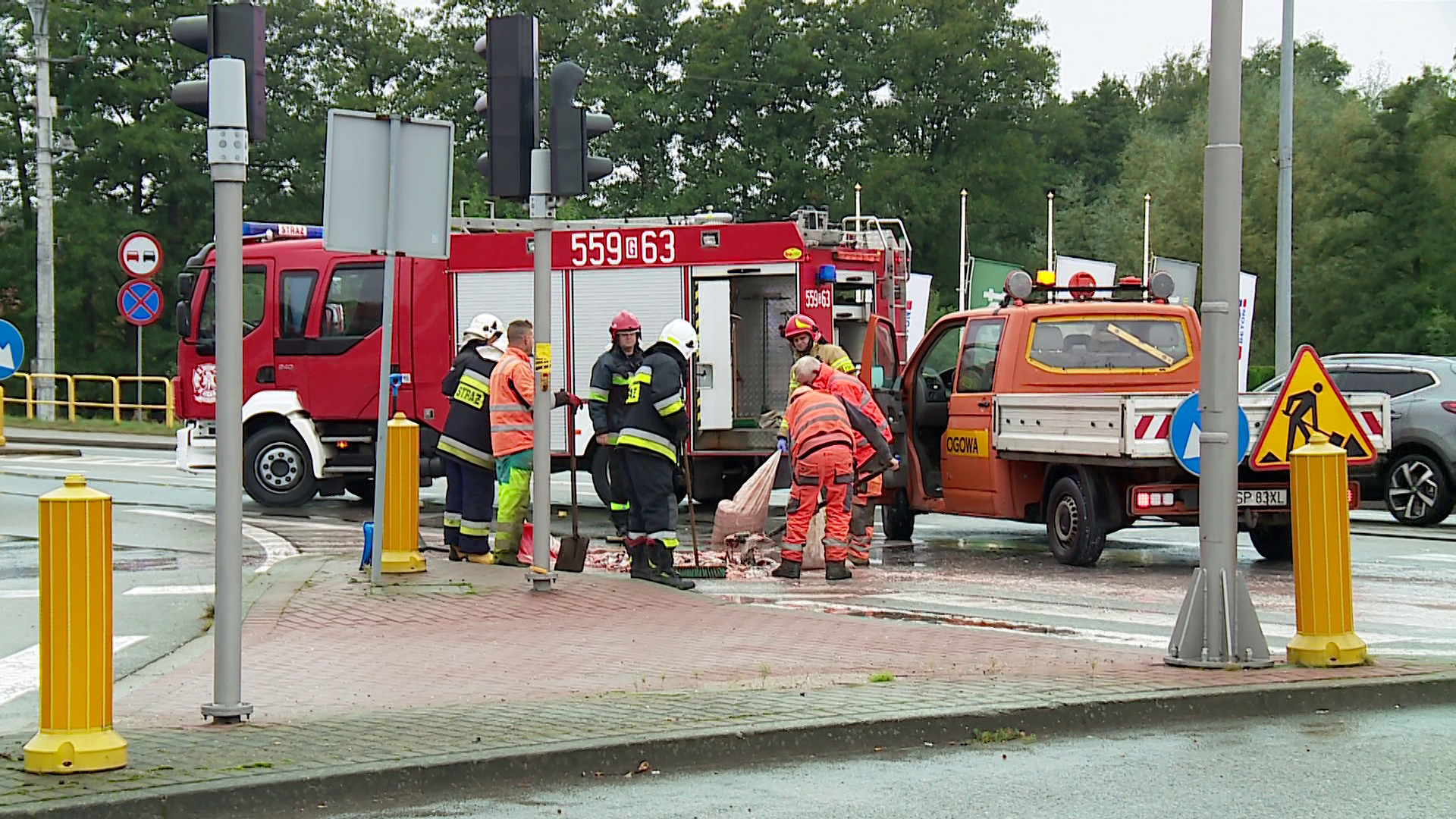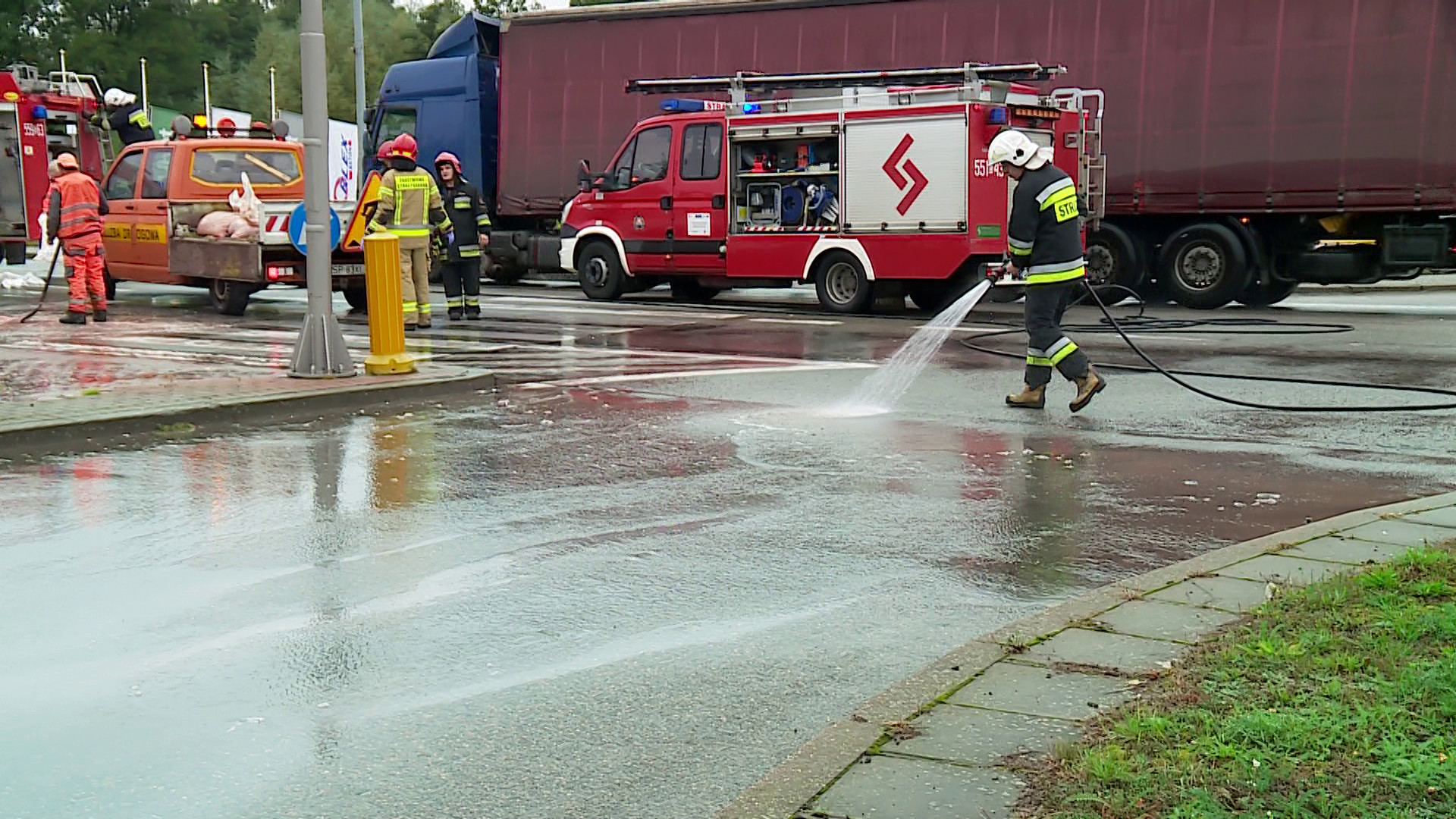 Na miejscu szybko pojawili się strażacy, którzy w pierwszej kolejności zabezpieczyli rybne pole i zajęli się usuwaniem ich z drogi. Czynności potrwały blisko godzinę.