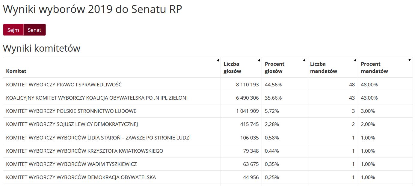 Co prawda, PiS zwyciężyło również w wyborach do Senatu RP, jednak nie zdobyło większości. Senatorowie partii rządzącej zajmą 48 miejsc w Izbie Wyższej Parlamentu.