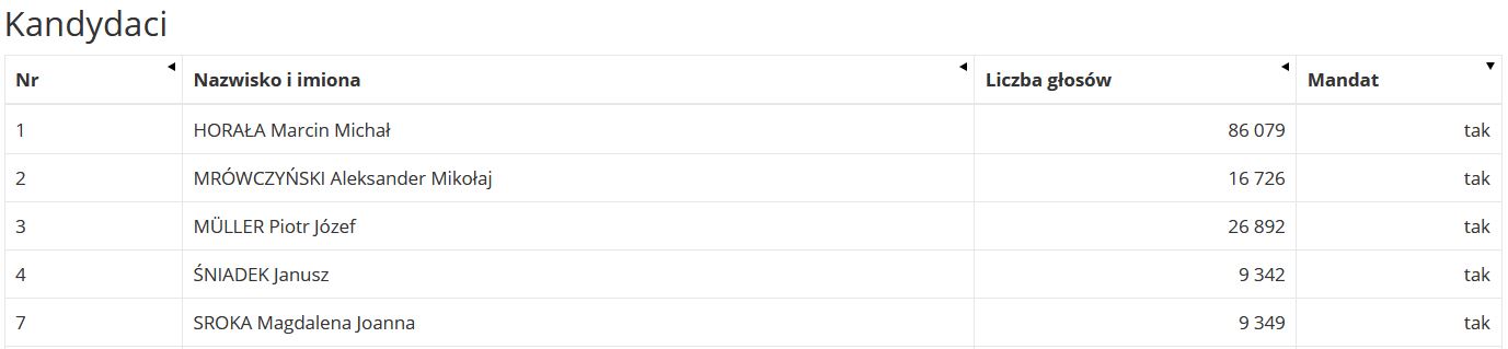 Jeśli chodzi o Prawo i Sprawiedliwość, największym poparciem w okręgu nr 26 może się poszczycić Marcin Horała. W przypadku KO największą liczbę głosów zdobyła Barbara Nowacka.