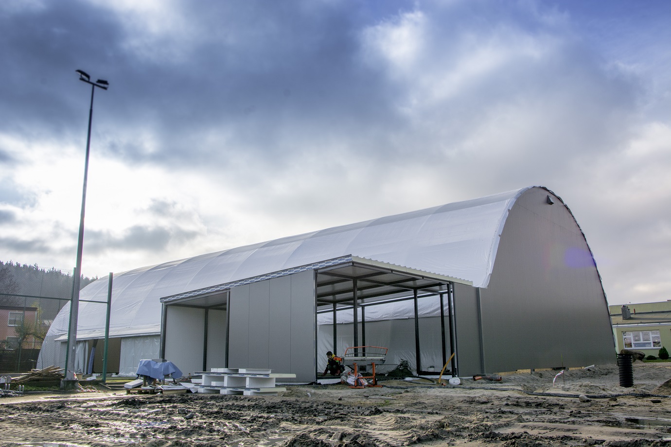 Obecnie zakończyły się już prace przy konstrukcji samej hali. Trwają jeszcze roboty wykończeniowe w budynku socjalnym. Prawdopodobnie inwestycja będzie oddana do użytku na początku stycznia 2020 roku.