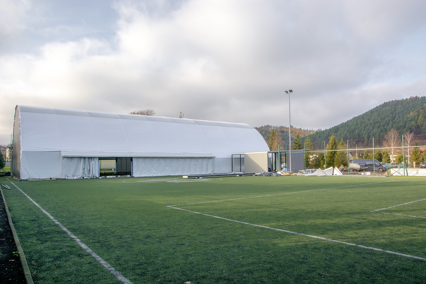 – Tak naprawdę hala będzie wyposażona w drugie w Polsce podłoże tego typu, stworzone z najnowocześniejszych materiałów na rynku. Pod trawą ułożona zostanie specjalna warstwa amortyzująca, dzięki której zwiększy się komfort użytkowania, a stawy trenujących będą mniej obciążone. Natomiast na wierzchu, zamiast sztucznego granulatu, znajdzie się warstwa z naturalnego surowca – korka, który nie będzie powodował nieprzyjemnego zapachu oraz obtarć – zapewnia Karol Sikorski, inwestor.
